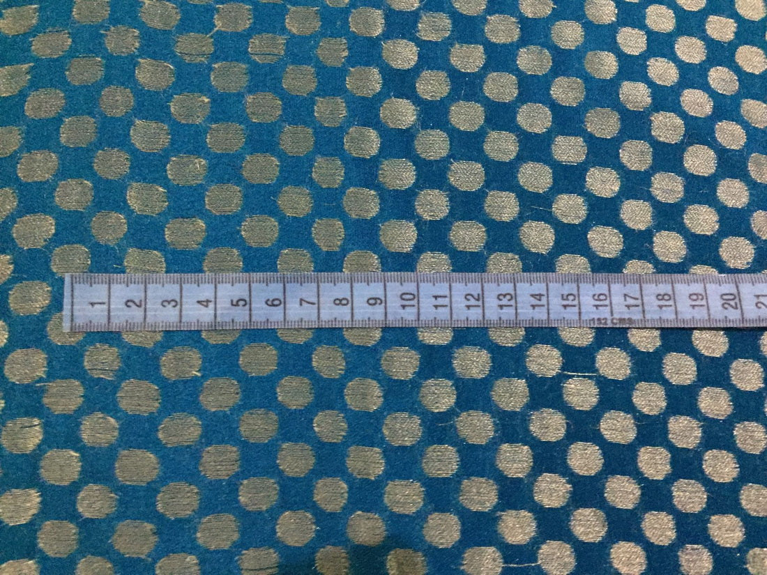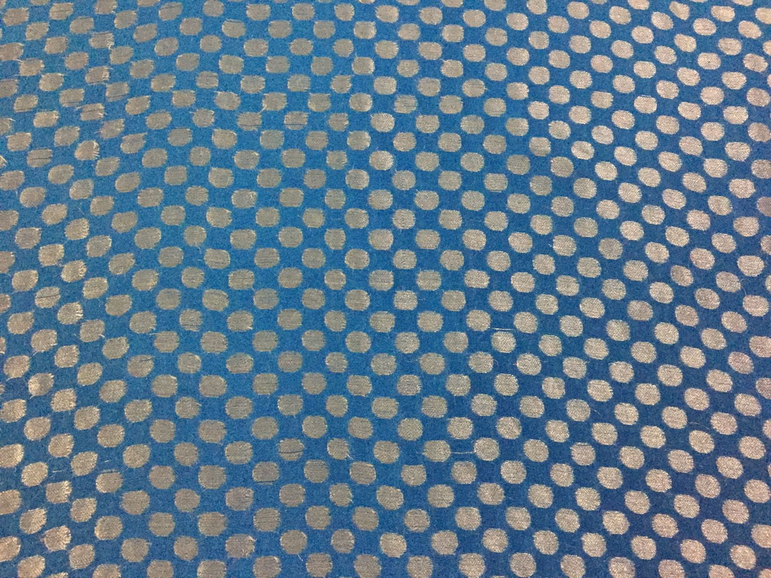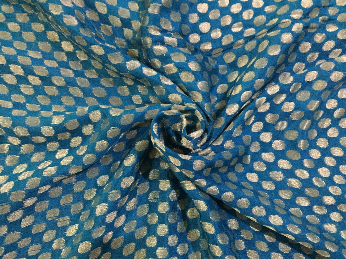 Silk Brocade sheer fabric peacock blue and metallic white gold motif 44" wide BROS35[2]