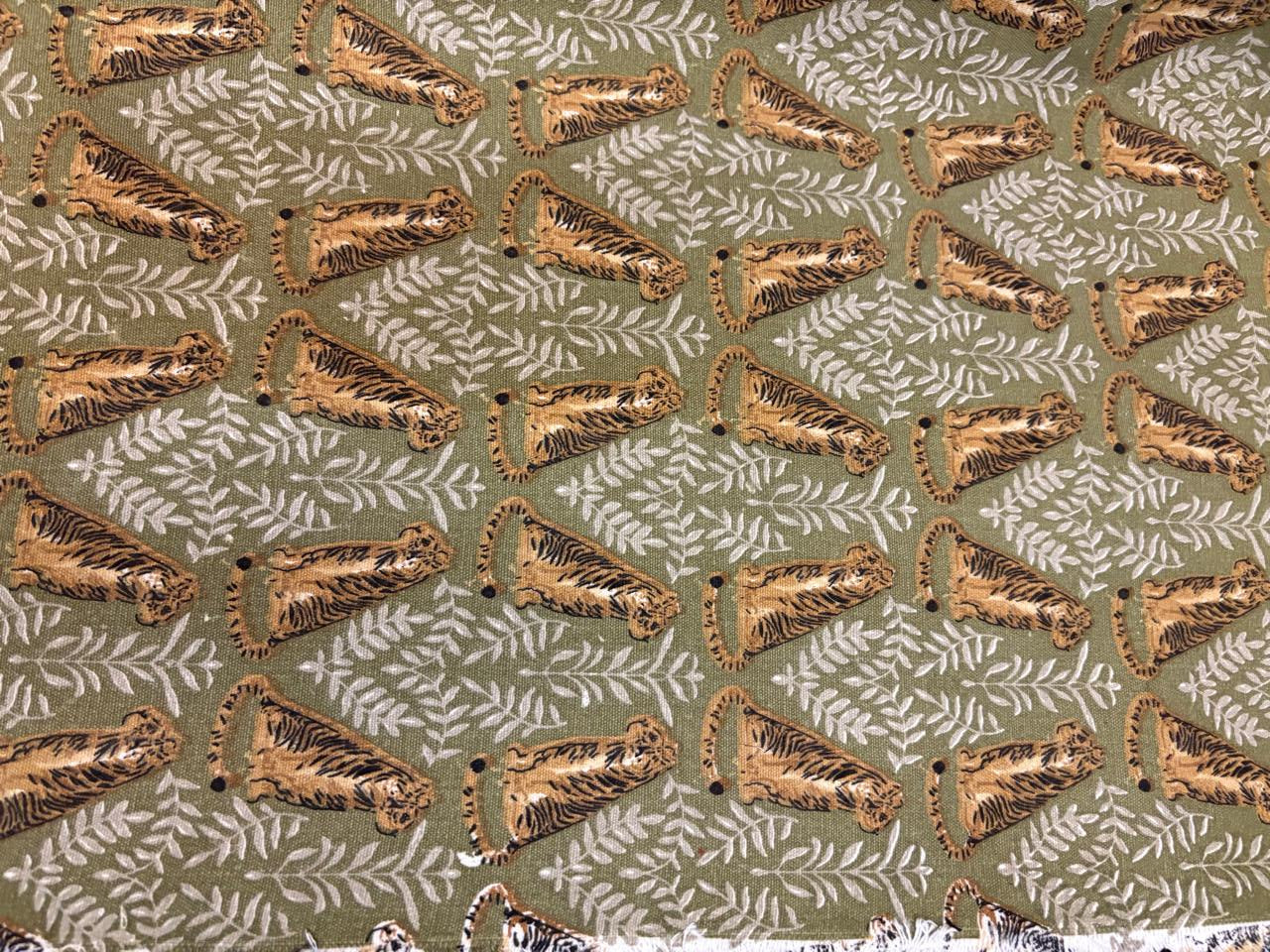 100% Cotton Denim Fabric 58" wide olive green with tigers [18867]