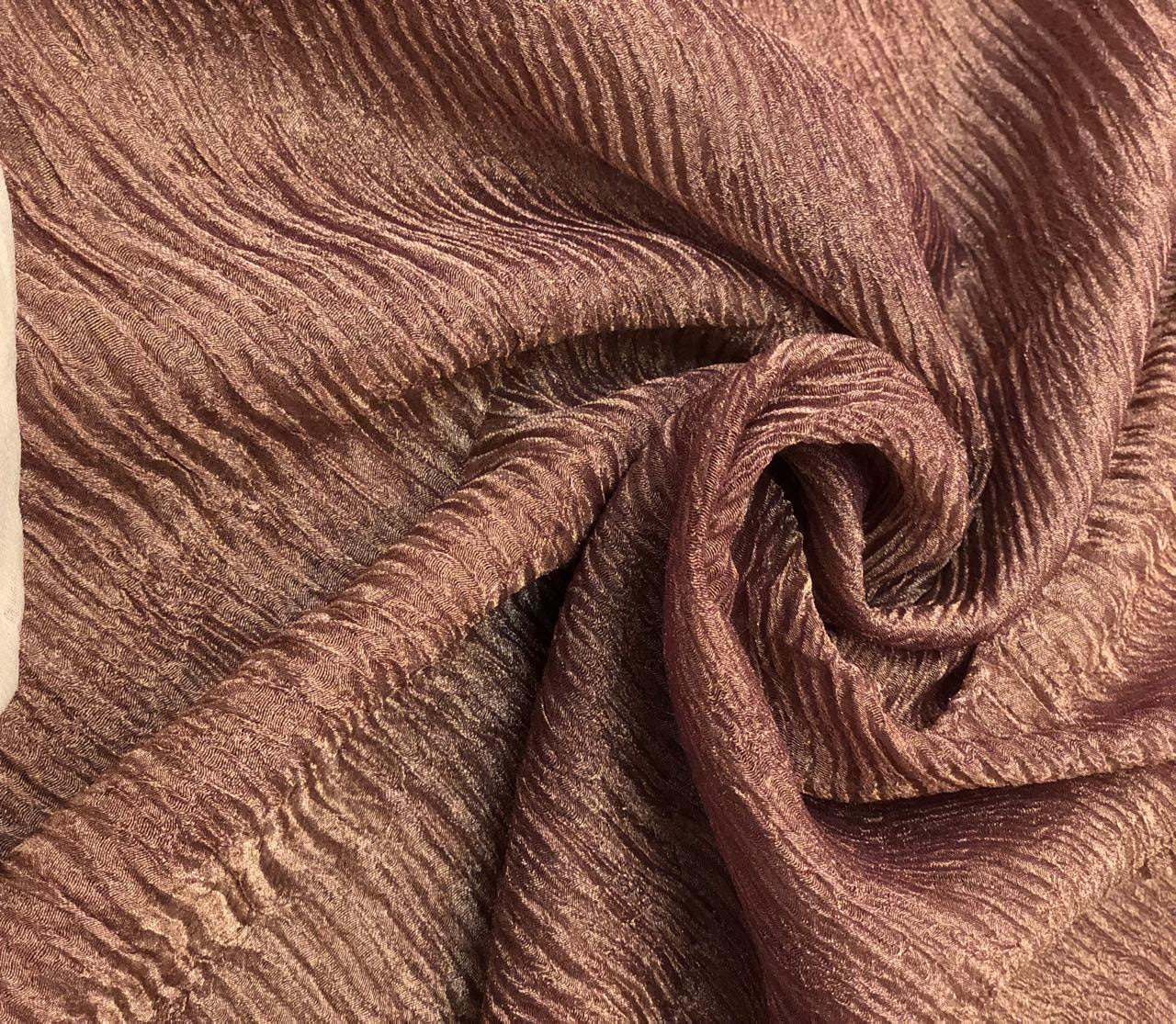 | Usage | Silk crushed tissue fabric is suitable for making dresses, skirts, tops, kurti, saree, dupatta, coat lining, veils, curtains, suits and more. |