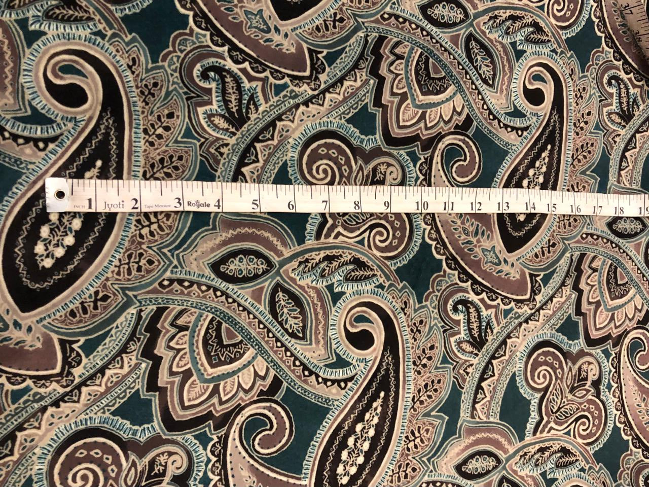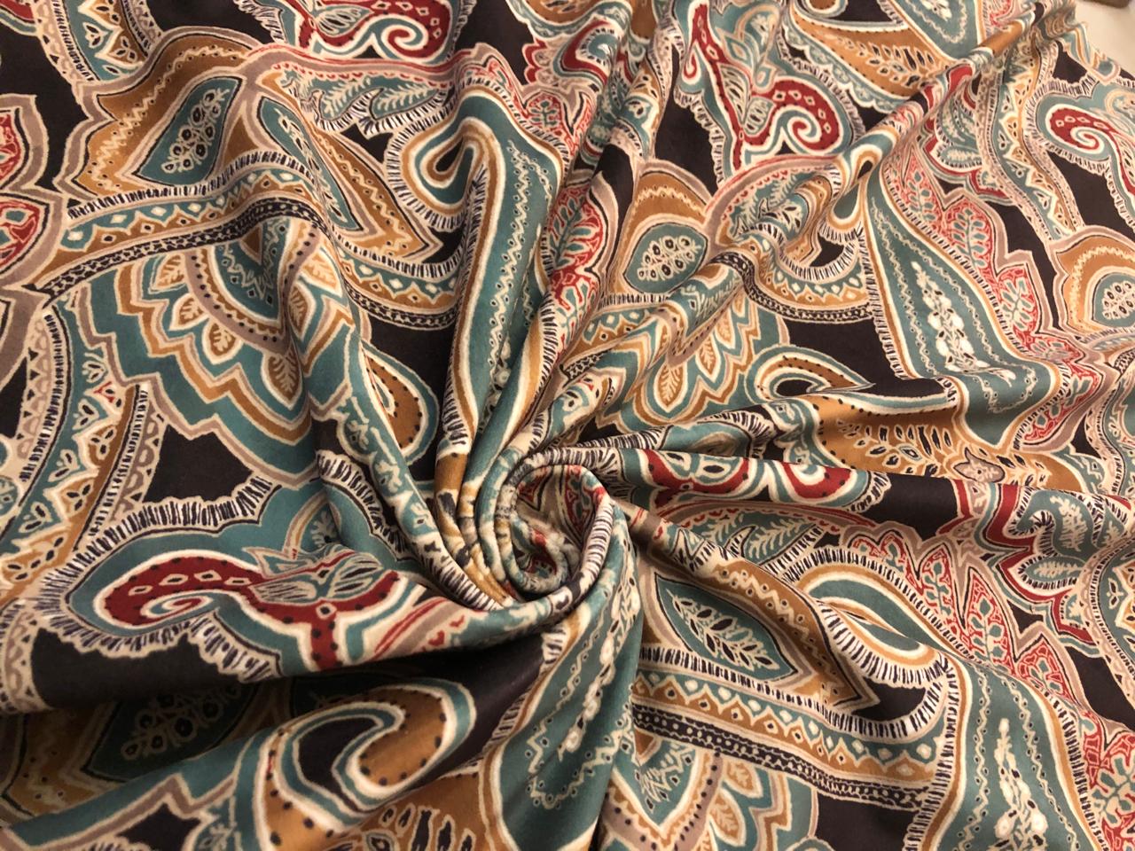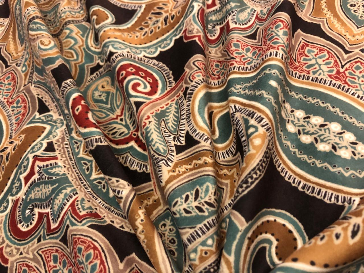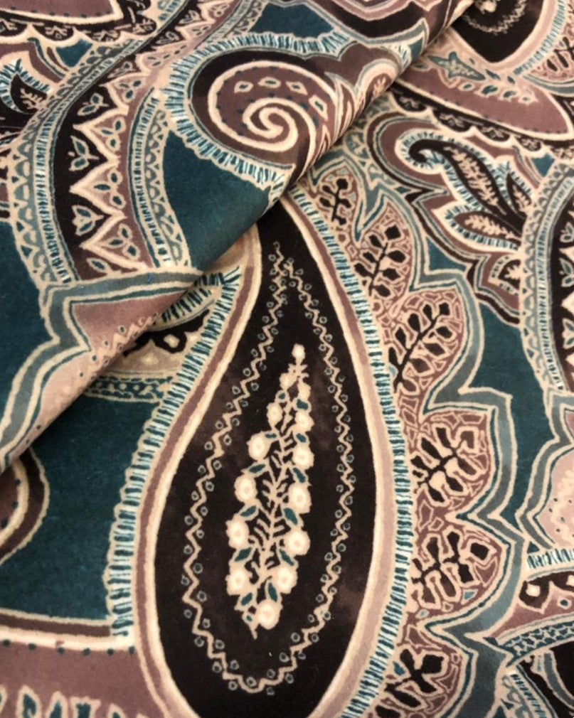Paisley is a decorative design featuring boteh motifs, which are teardrop-shaped with a curved upper end. The paisley design is often used in clothing, textiles, and wallpaper.
