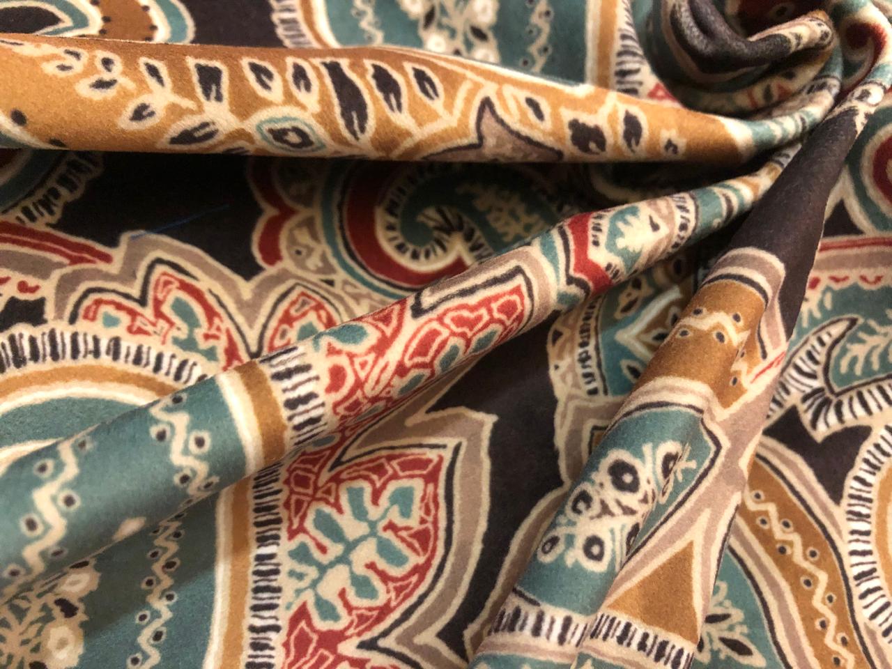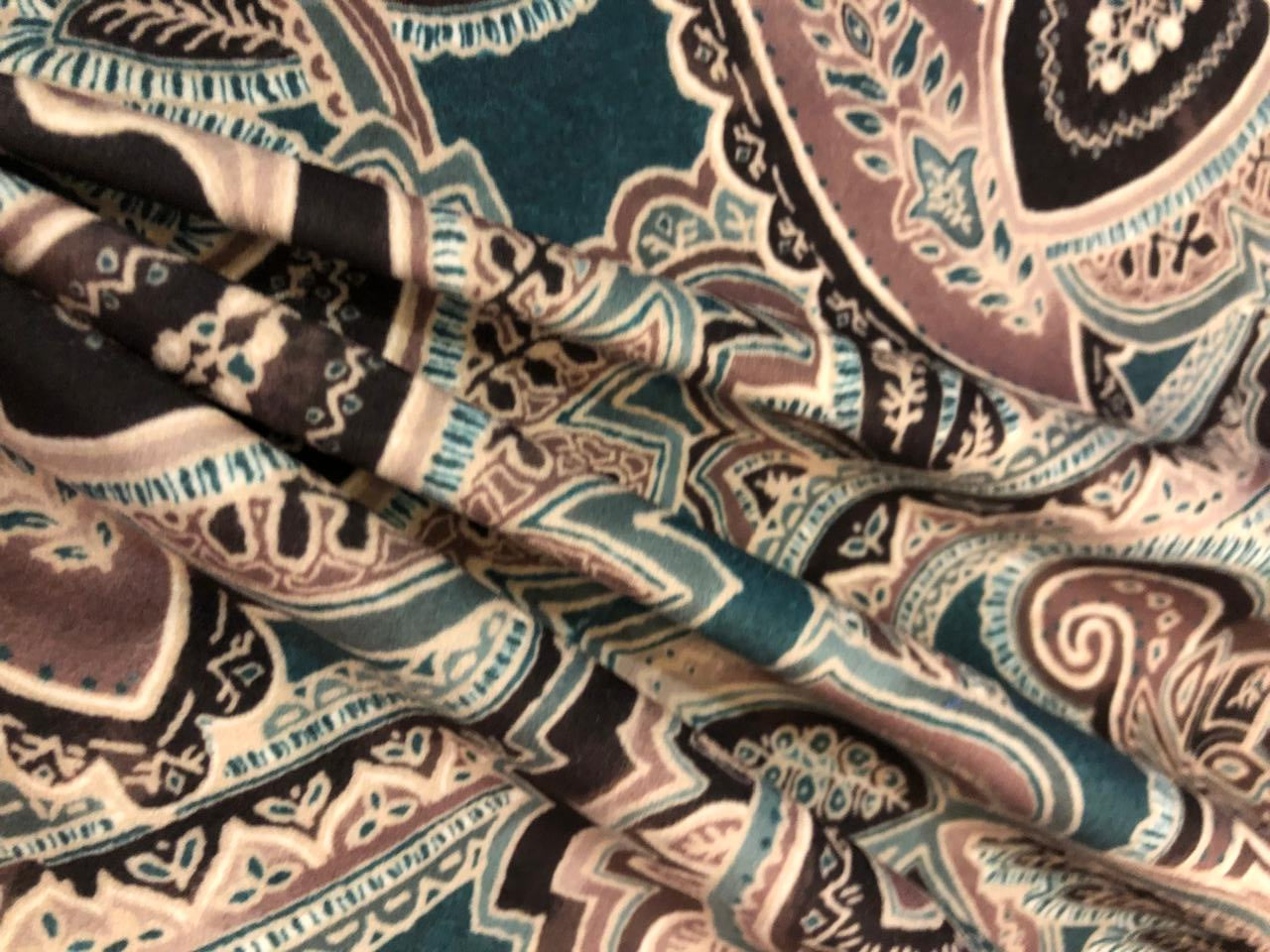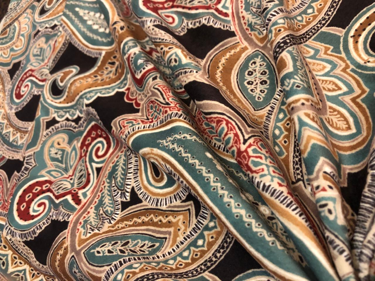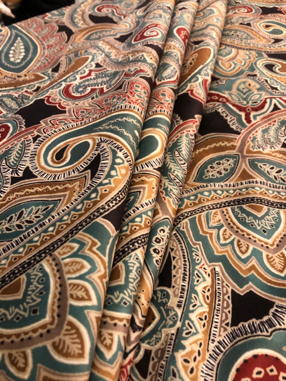 Paisley is a decorative design featuring boteh motifs, which are teardrop-shaped with a curved upper end. The paisley design is often used in clothing, textiles, and wallpaper.