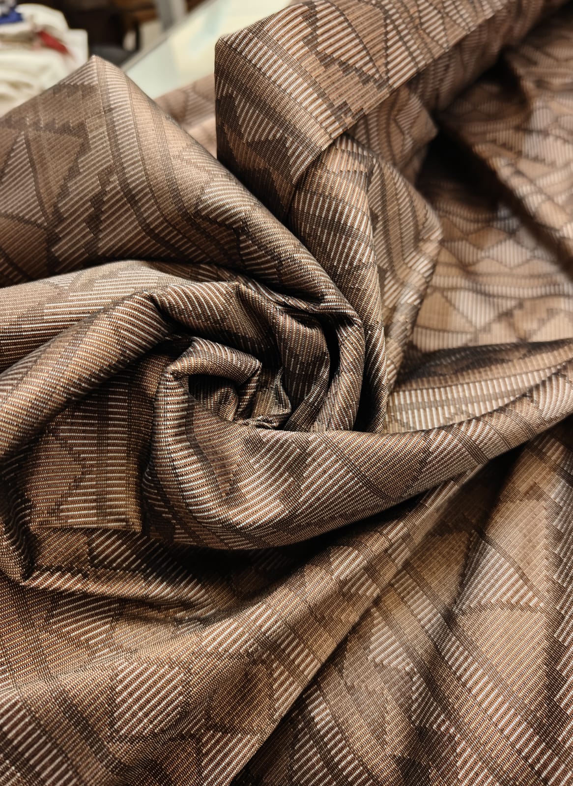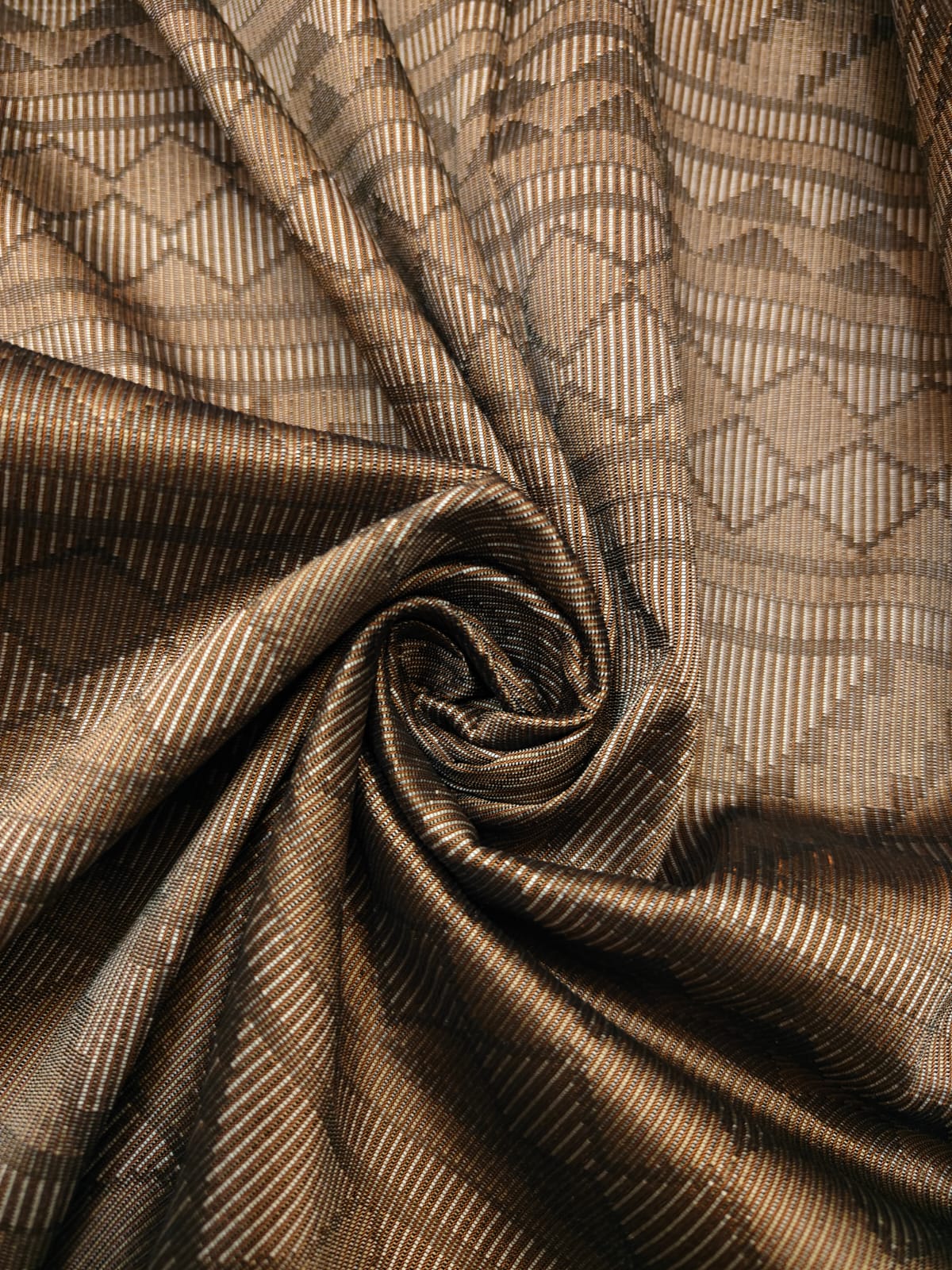 Taffeta is a crisp, smooth, plain woven fabric made from silk .The word is Persian in origin and means "twisted woven". It is considered to be a "high-end" fabric, suitable for use in ball gowns, wedding dresses, and in interior decoration for curtains or wallcoverings. It is also widely used in the manufacture of corsets and corsetry: it yields a more starched-like type of cloth that holds its shape better than many other fabrics.