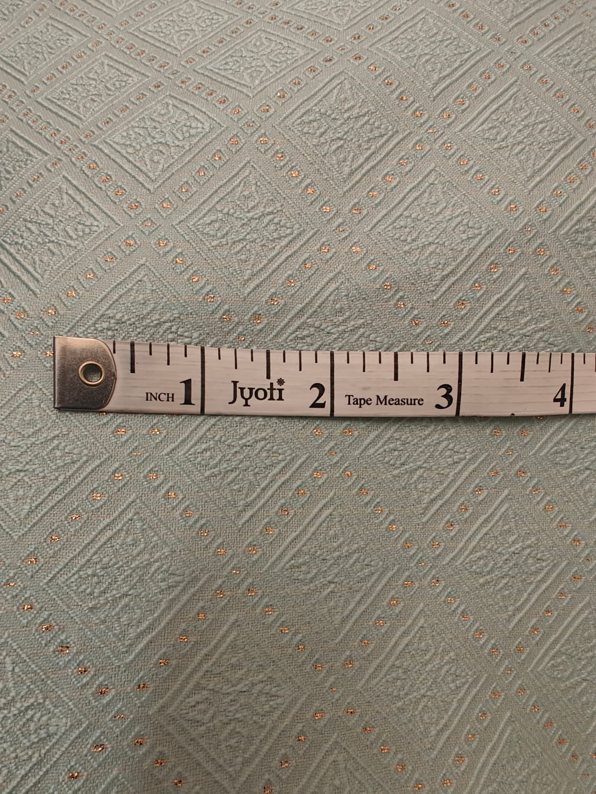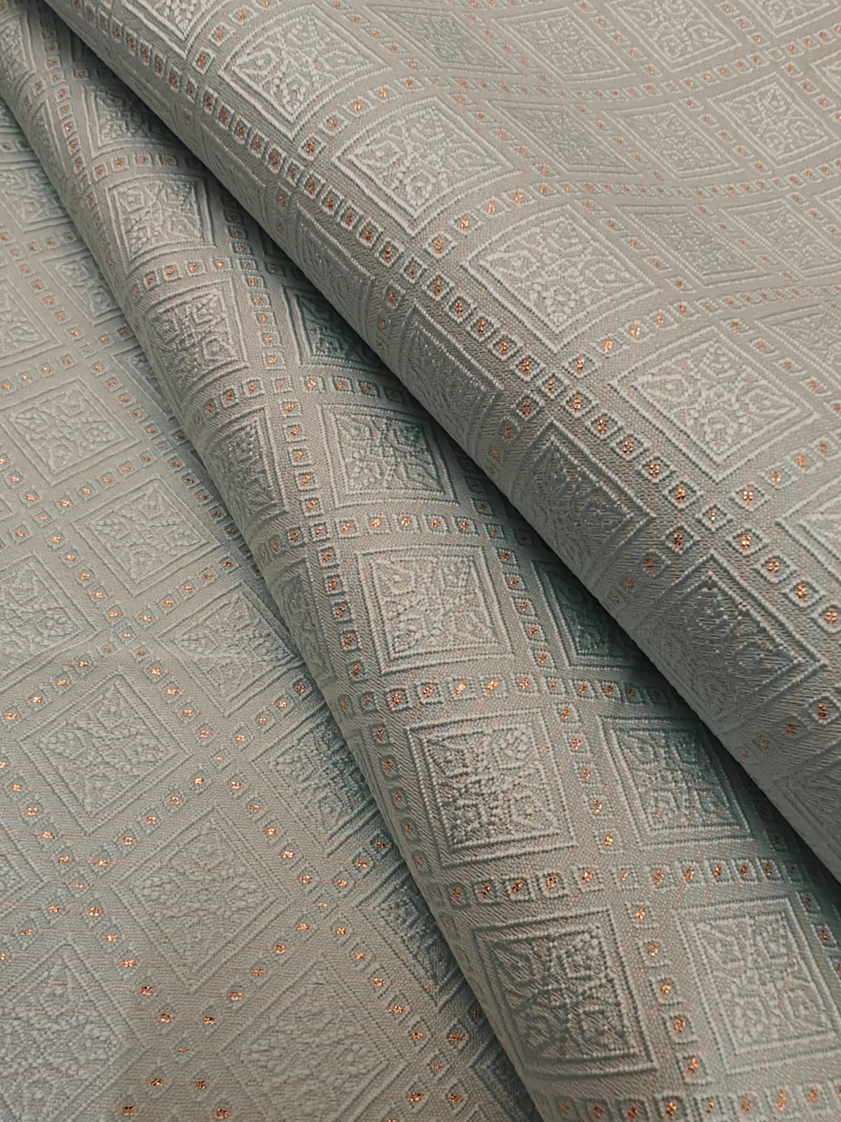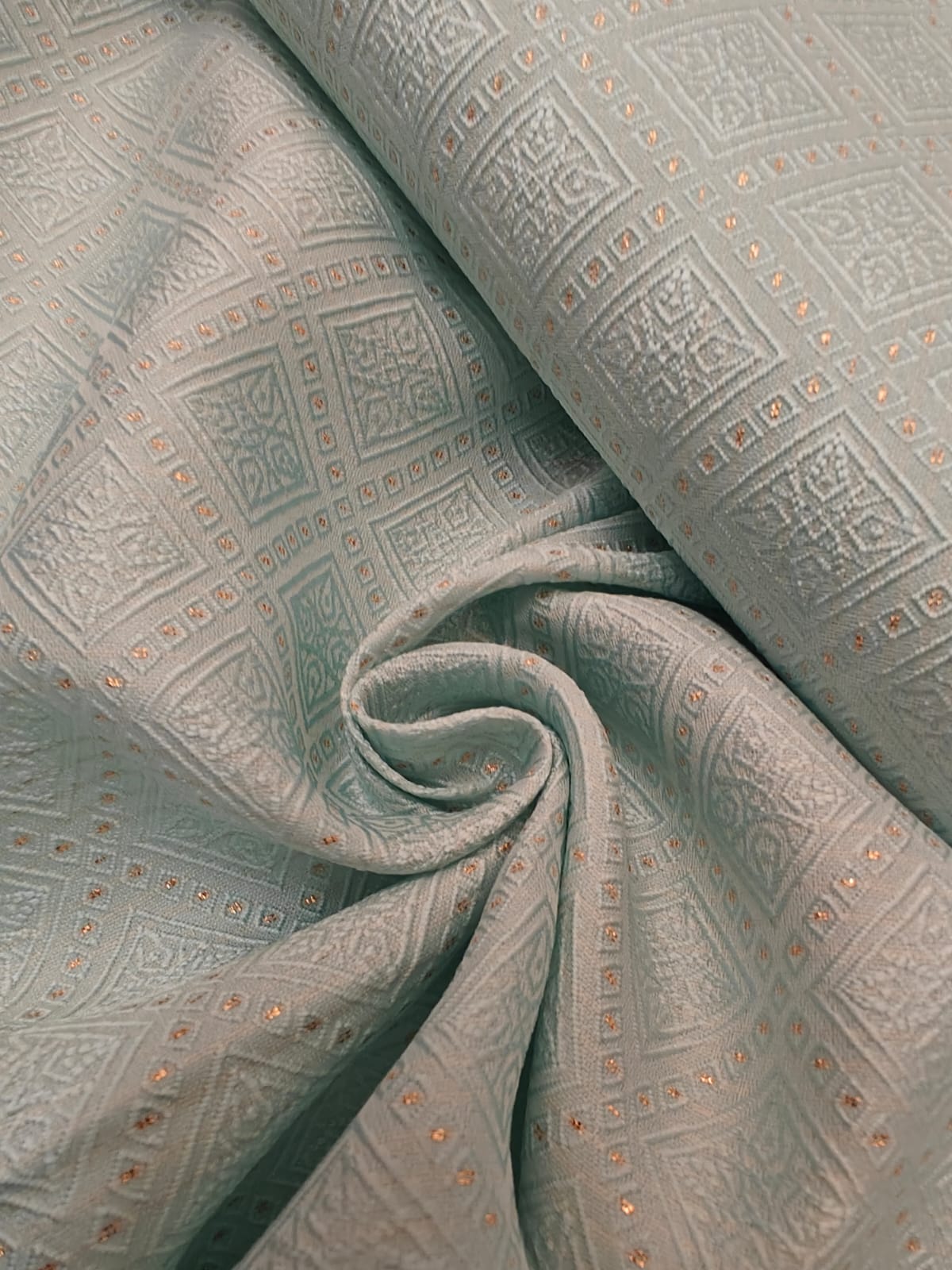 Silk Brocade fabric baby blue with self color geometric motif and subtle gold metallic dots BRO1174[3]