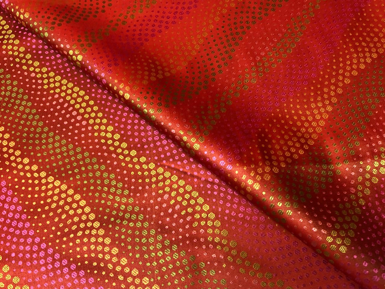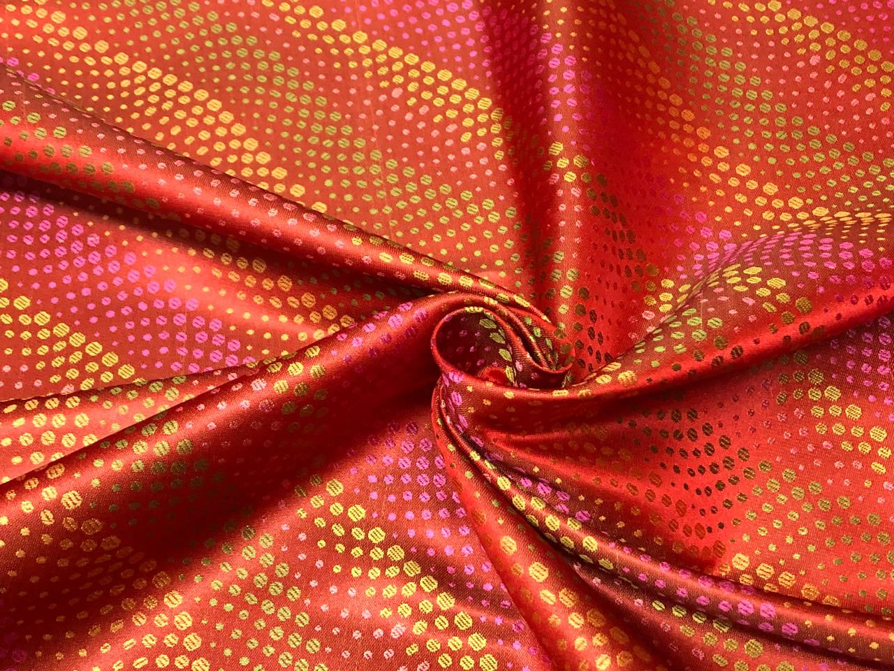 Silk Brocade fabric dotted jacquard in pink, gold and green BRO1106[2]