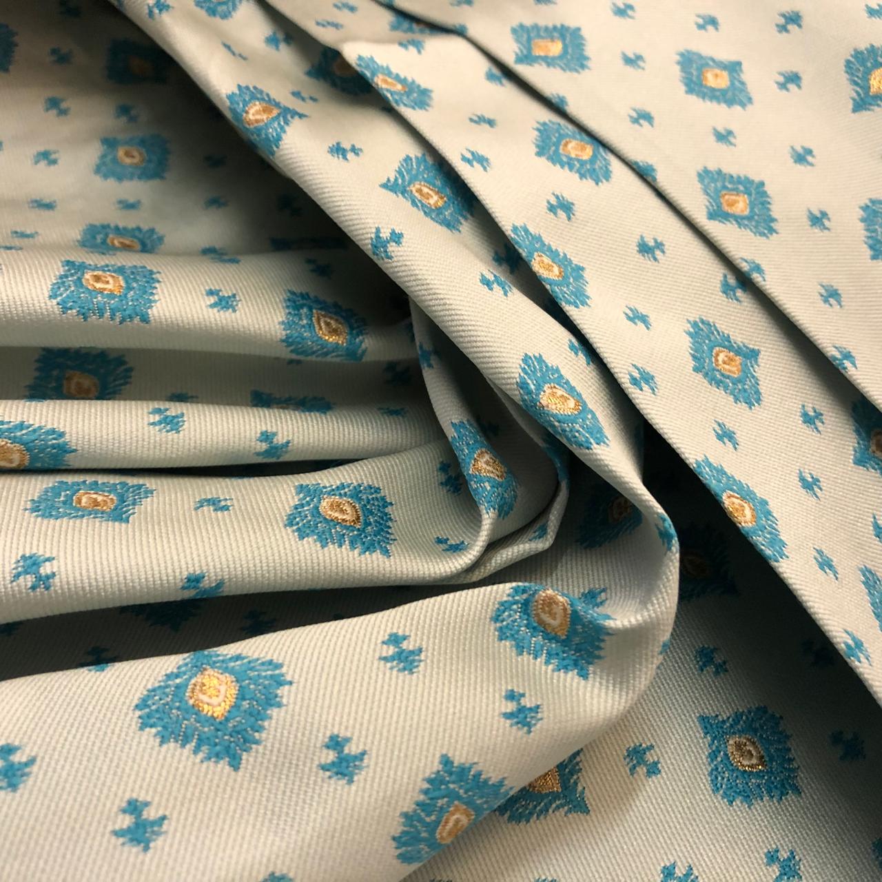 Silk Brocade fabric  jacquard powder blue with turquoise blue and metallic gold tiny motifs 54" BRO1126[3]