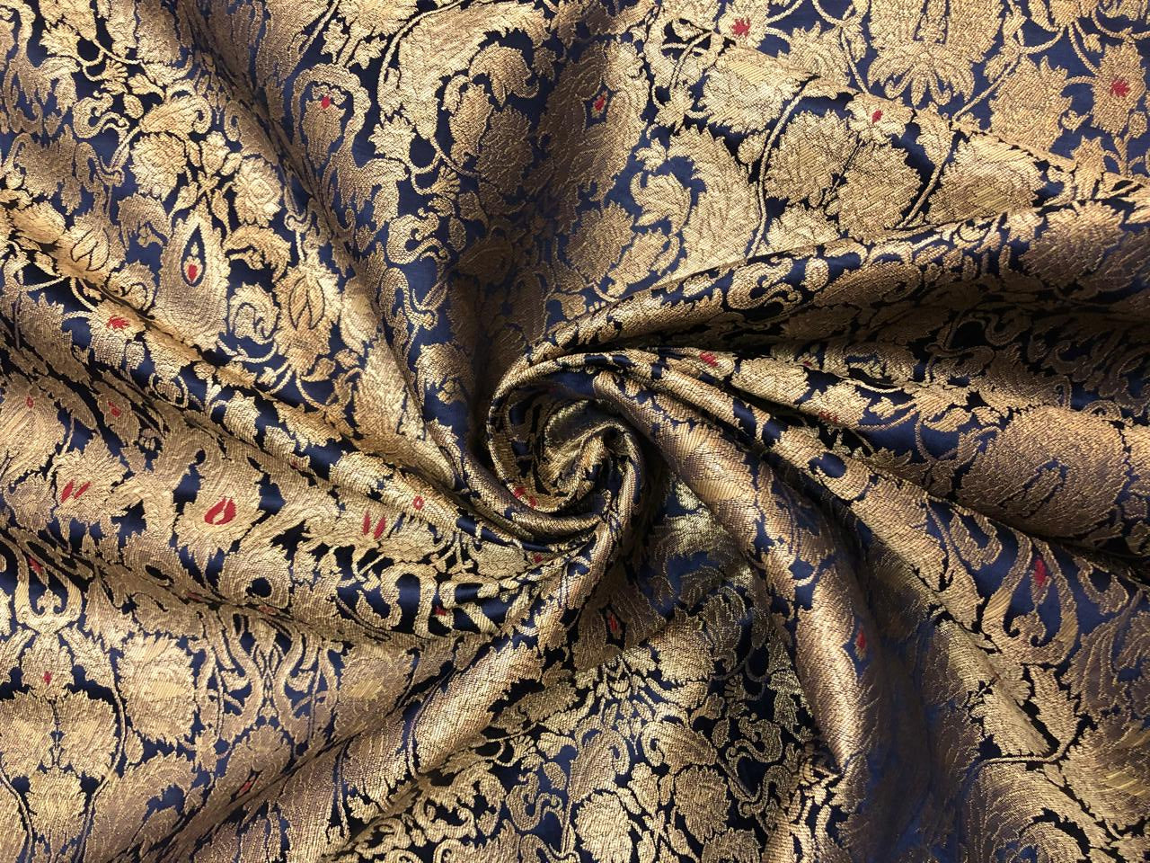 Silk Brocade fabric king khab 44" wide available in 5 colors navy ,black ,burgundy ,mulberry and hot pink BRO1120