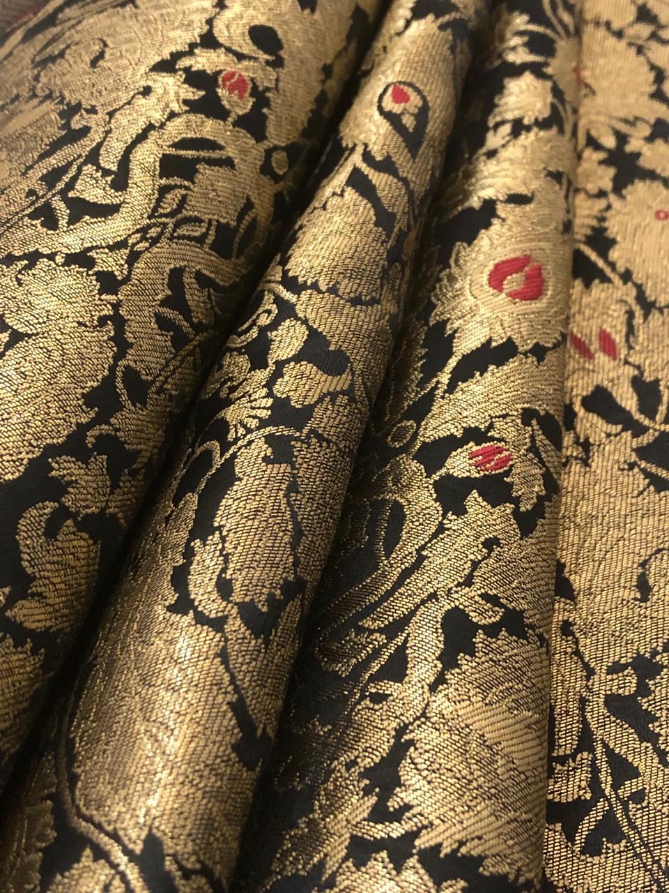 As luxurious as it seems, the art of brocade has transcended from the age old era of opulence and royalty. Conceptualized as a  (design) on paper first, the (designer) translates the design on Banarasi silk weaves, using fine gauze or gold or silver threads with immaculate precision into patterns that range from artistic elaboration to minimalistic intricacy. Romance with royalty in your outfit daily.