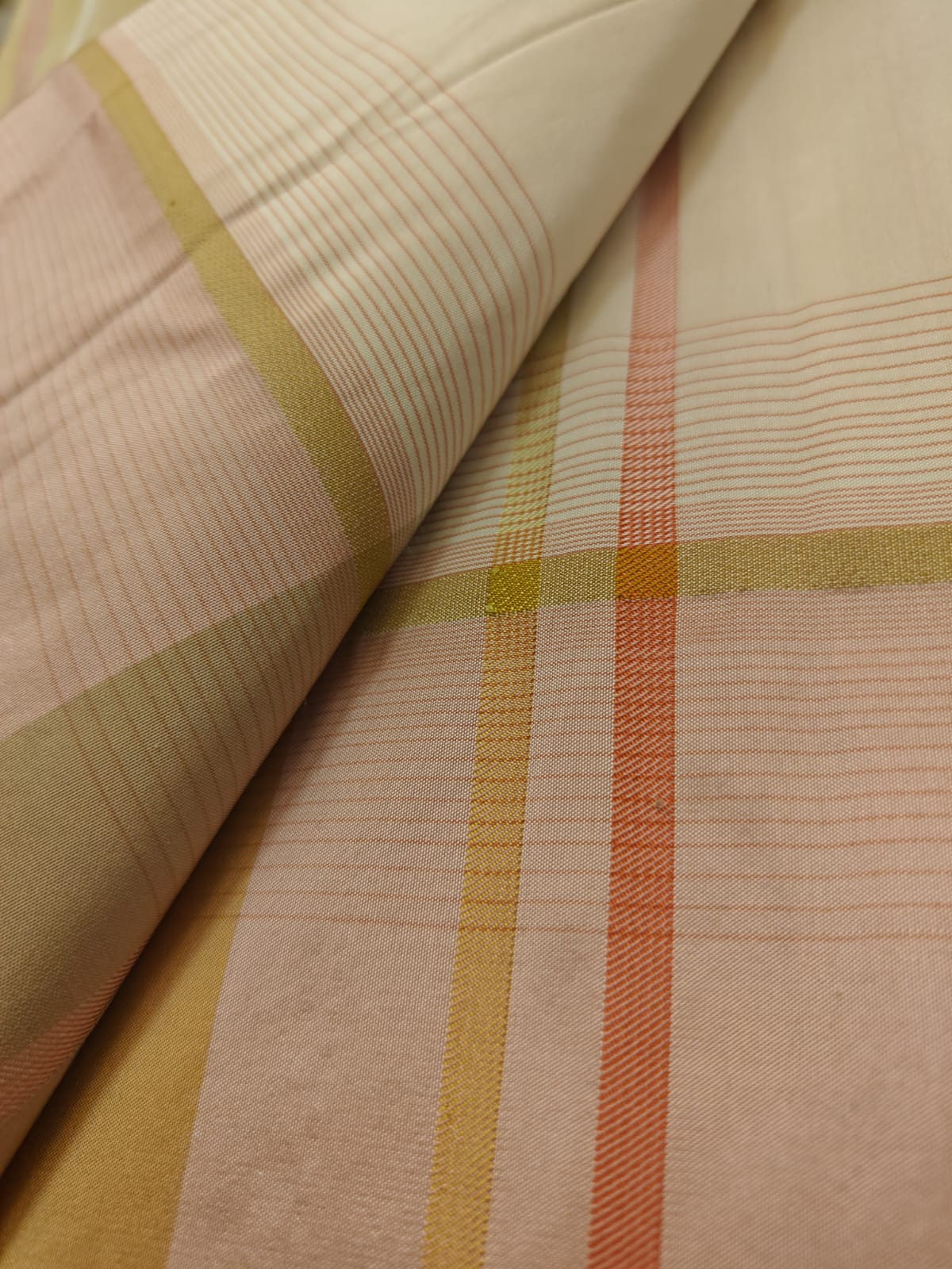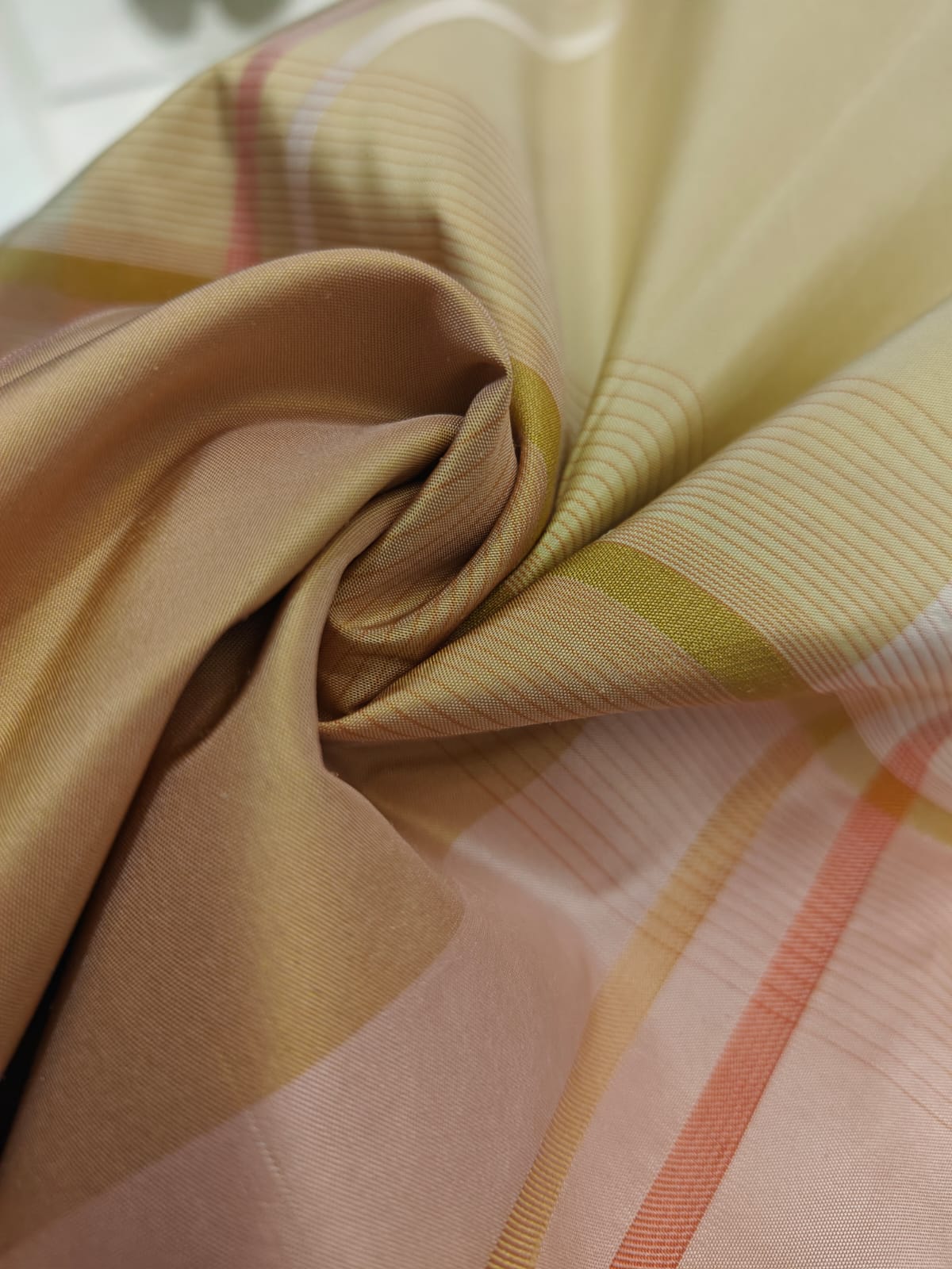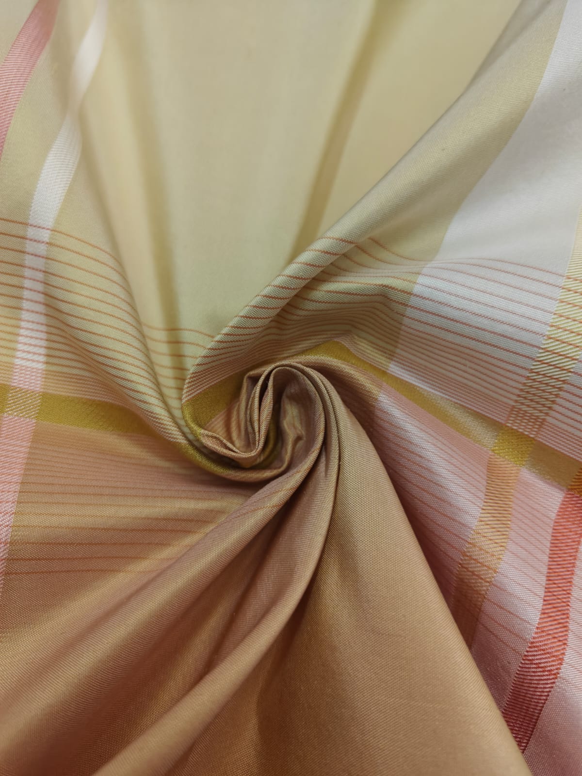 Taffeta is a crisp, smooth, plain woven fabric made from silk .The word is Persian in origin and means "twisted woven". It is considered to be a "high-end" fabric, suitable for use in ball gowns, wedding dresses, and in interior decoration for curtains or wallcoverings. It is also widely used in the manufacture of corsets and corsetry: it yields a more starched-like type of cloth that holds its shape better than many other fabrics.