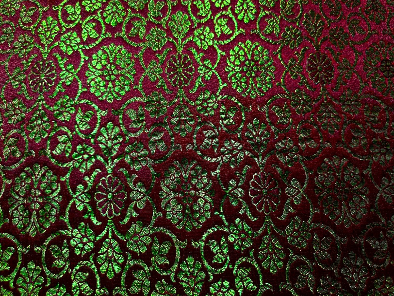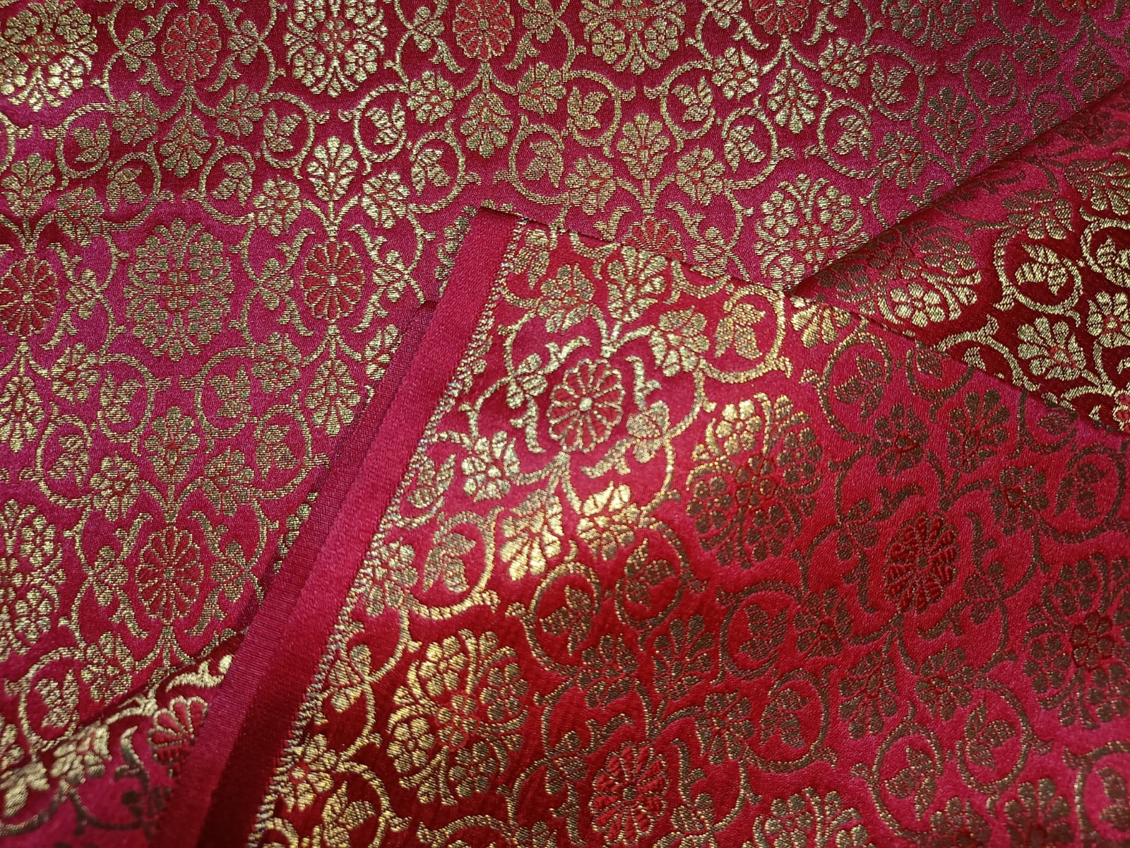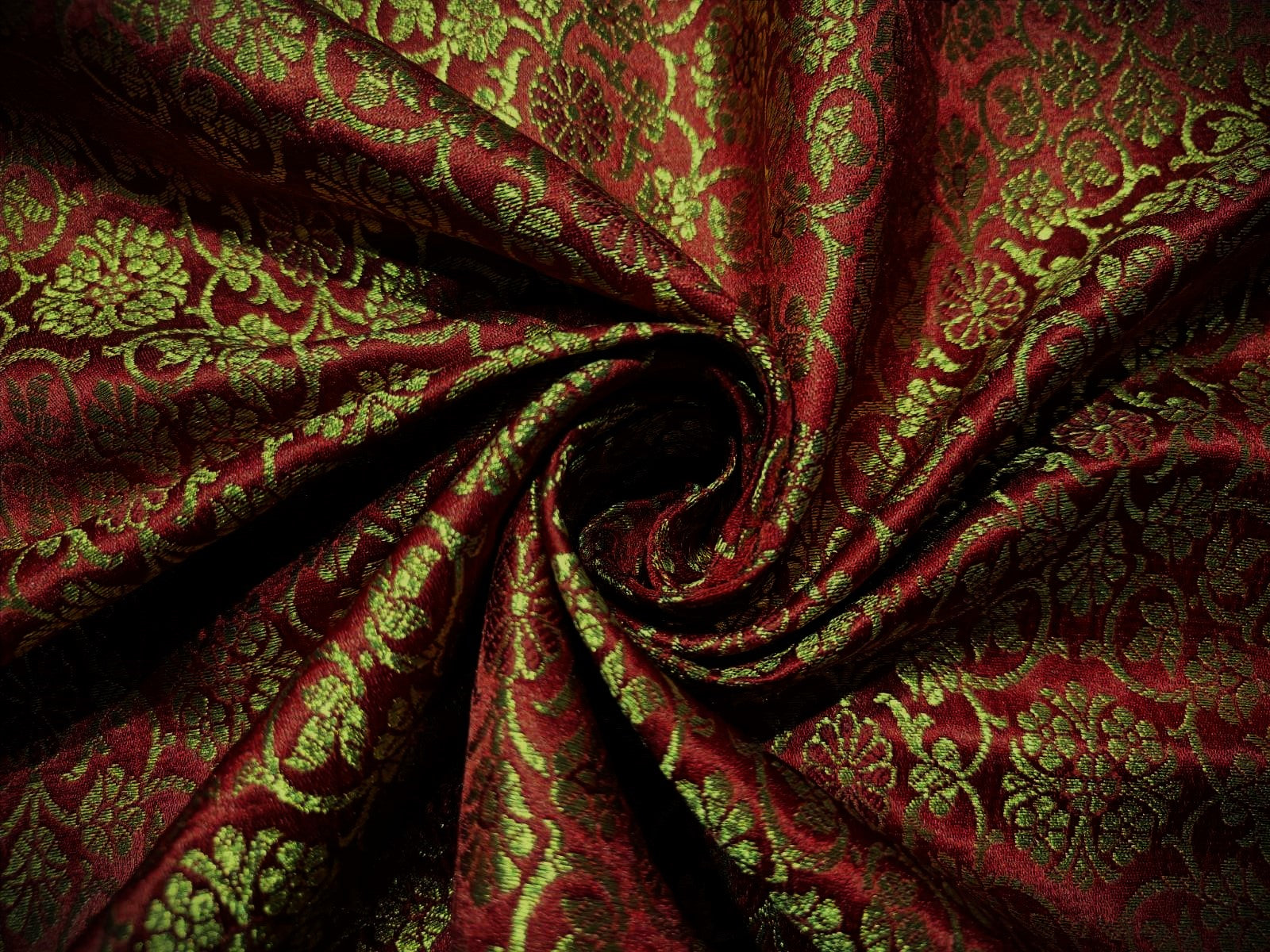 Brocade fabric FLORA,L with metallic gold 44" wide available in 3 colors BRO889 [green/watermelon red/blood red]