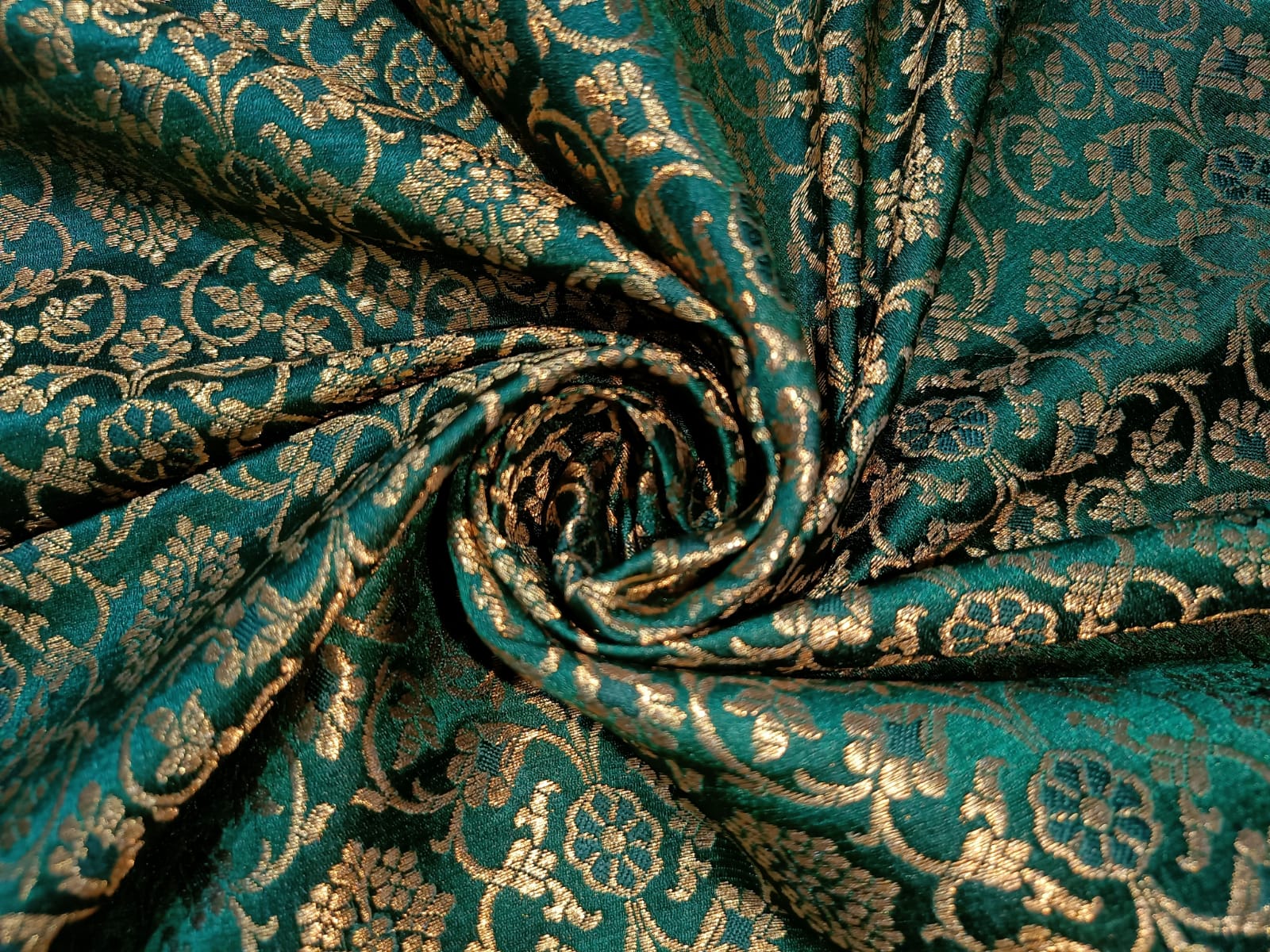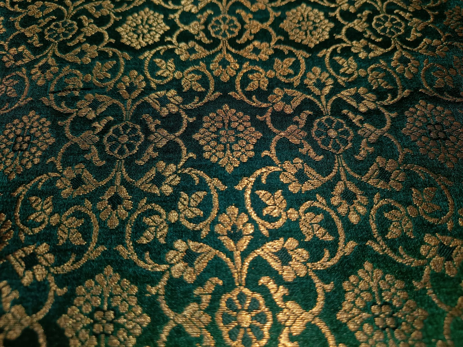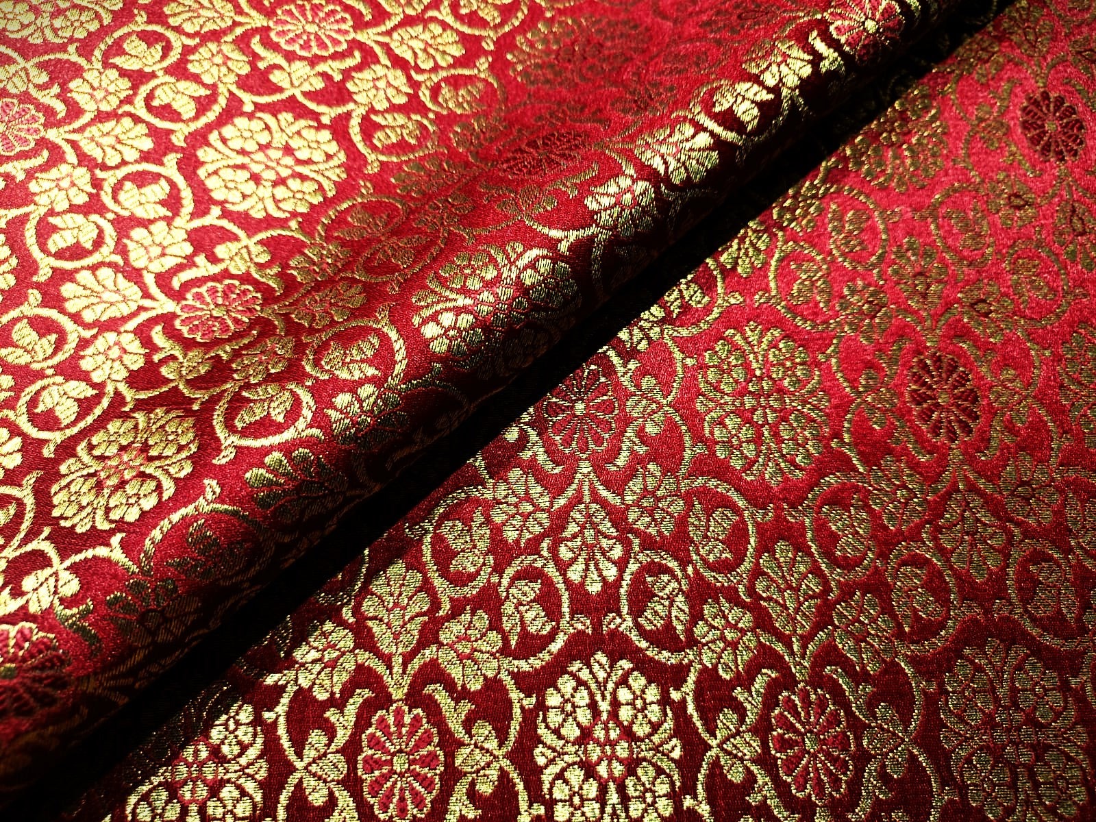 Brocade fabric FLORA,L with metallic gold 44" wide available in 3 colors BRO889 [green/watermelon red/blood red]