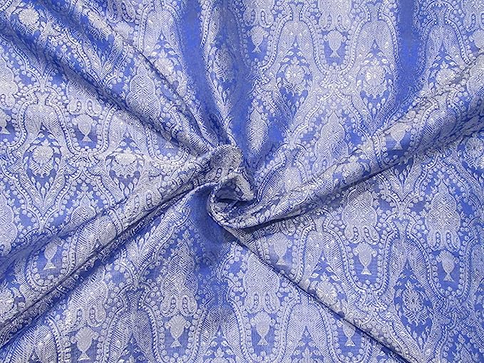 Silk Brocade Fabric Blue Victorian color 44" wide BRO758[3]