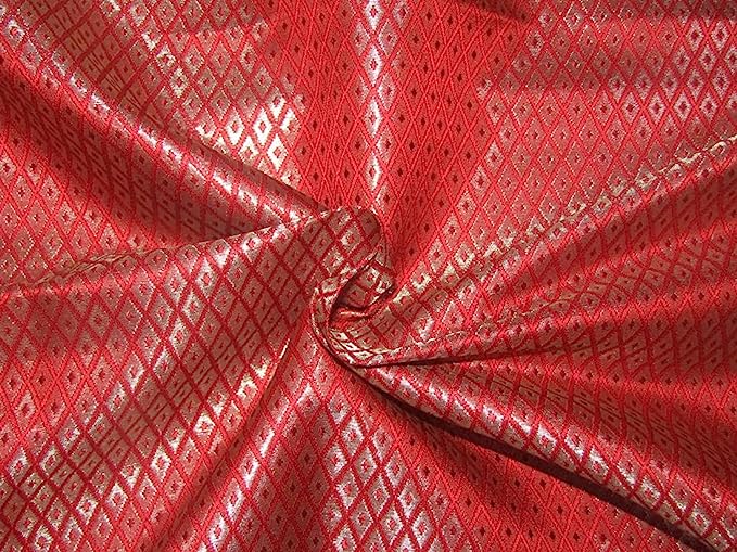 Silk Brocade Fabric red and Metallic Gold COLOR 44" WIDE BRO766B[3]