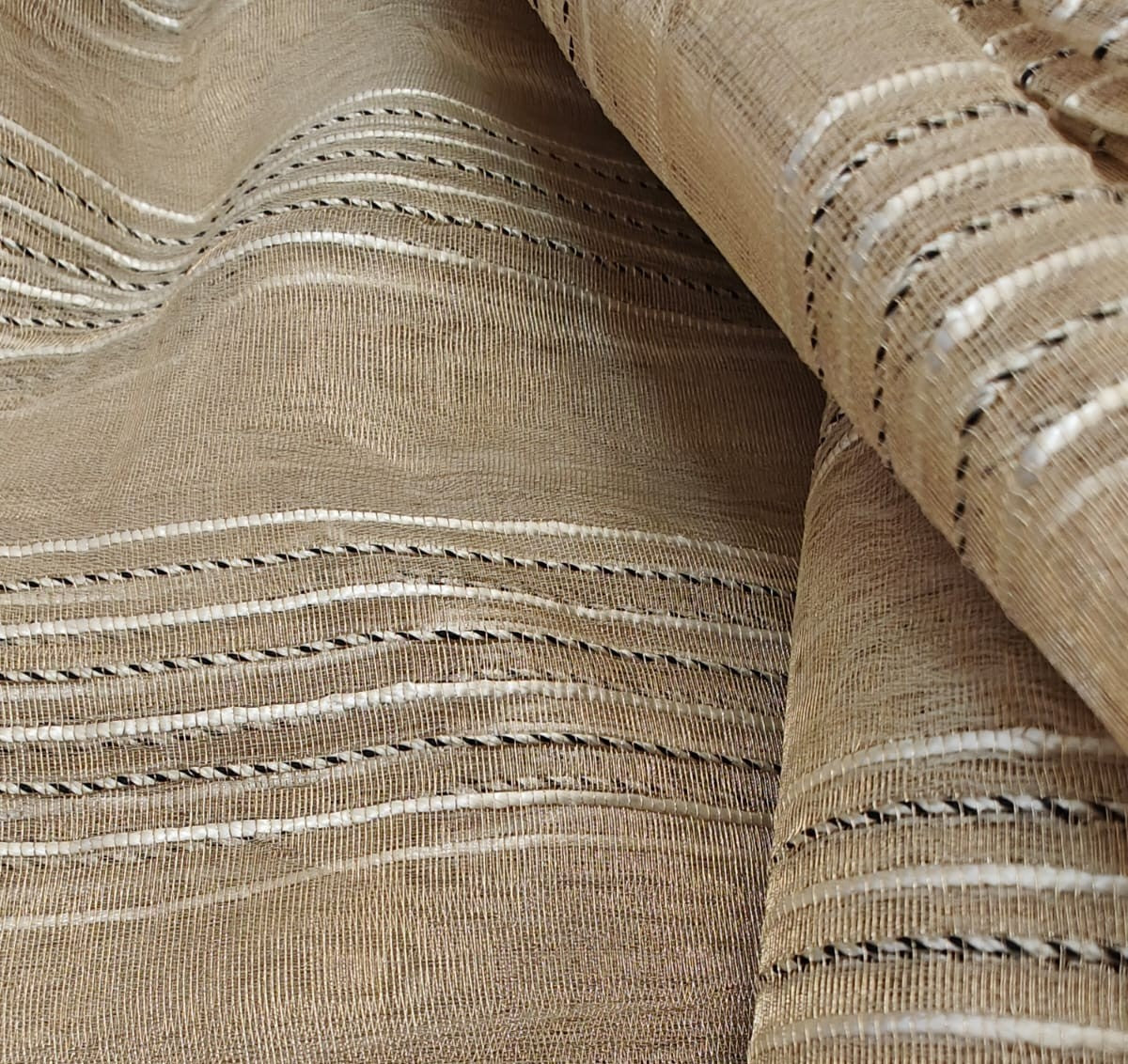 A very sheer, crisp fabric that is strong and durable with a firm hand and a flat, smooth texture. The open weave is naturally stiff without the addition of any "stiffeners", so great for specific use in wedding garments, petticoats, costuming, lampshade work, interfacing, etc. Readily accepts and reflects strong, brilliant colors.