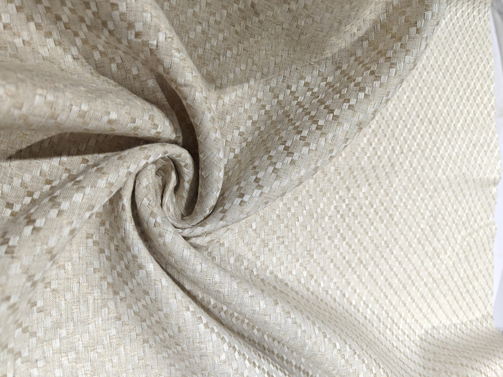 🌿 Caption: Dive into the exquisite world of linen dobby! ✨ We're loving the subtle texture and timeless elegance of our new off-white/ivory and natural shades. Crafted from sustainable and eco-friendly linen, this fabric isn't just beautiful – it's kind to the planet too. Perfect for breathable apparel, home decor, and everything in between. What will you create with it?
