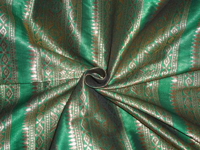 BROCADE FABRIC EMERALD GREEN X METALLIC GOLD COLOR 65"INCHES