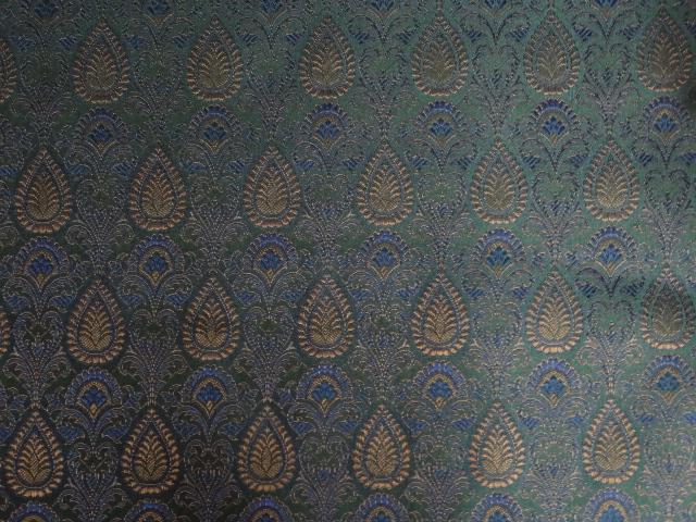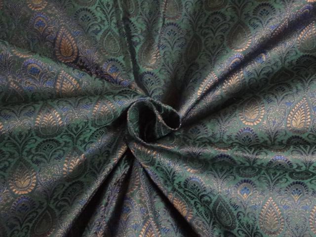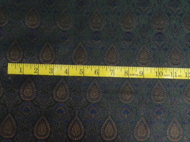 BROCADE FABRIC FOREST GREEN,BLUE & METALLIC GOLD