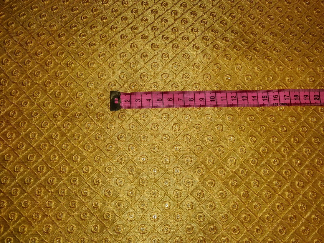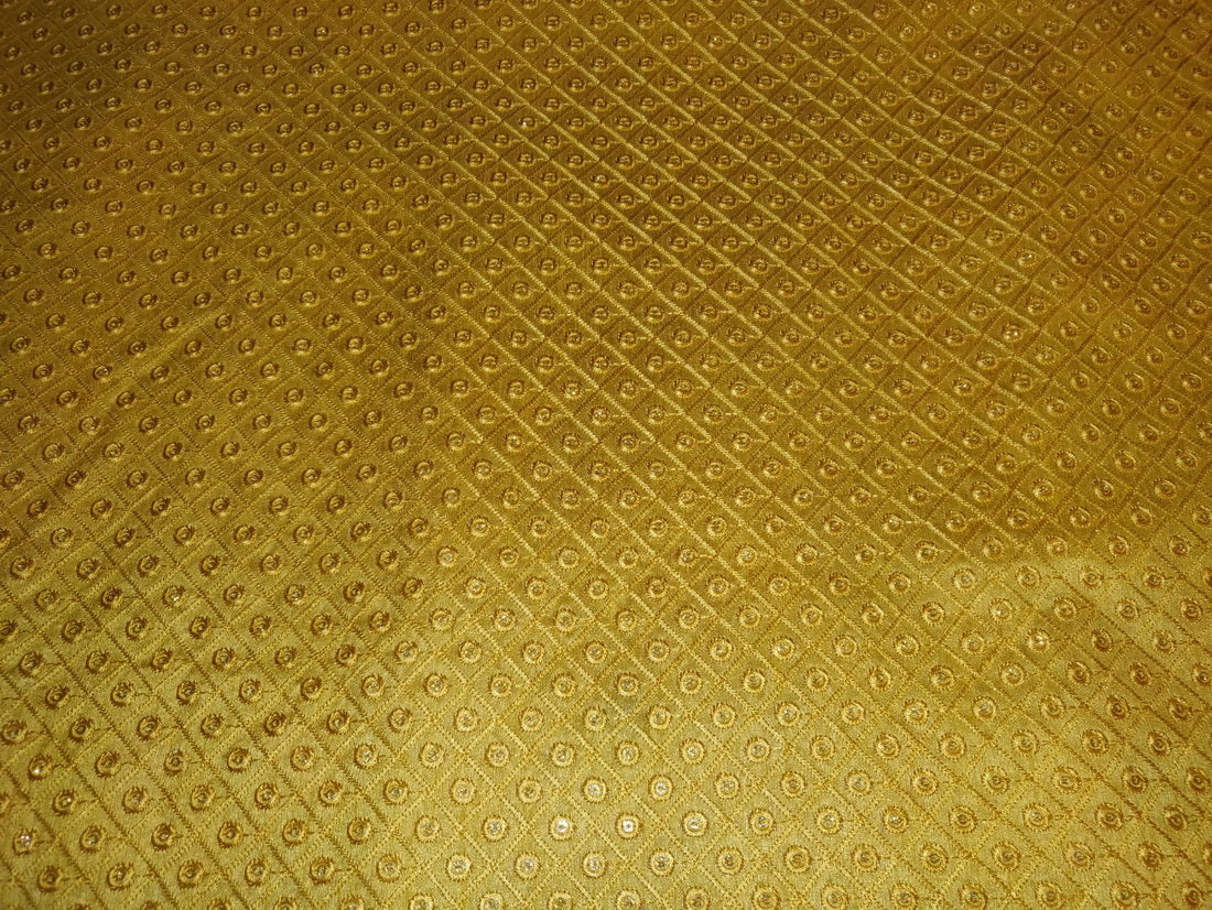 Brocade fabric intricate geometric diamond yellow color with mirror work 44" wide BRO792[2]