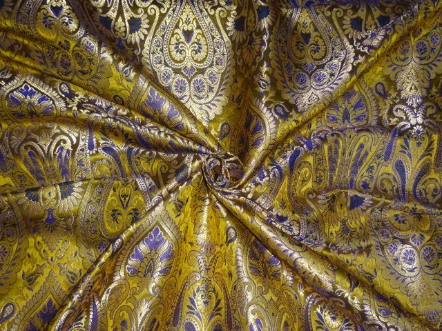 BROCADE FABRIC MUSTARD,YELLOW,PURPLE AND GOLD