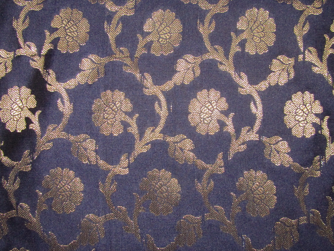 Brocade fabric navy x metallic gold color 44" wide BRO756 A[1]