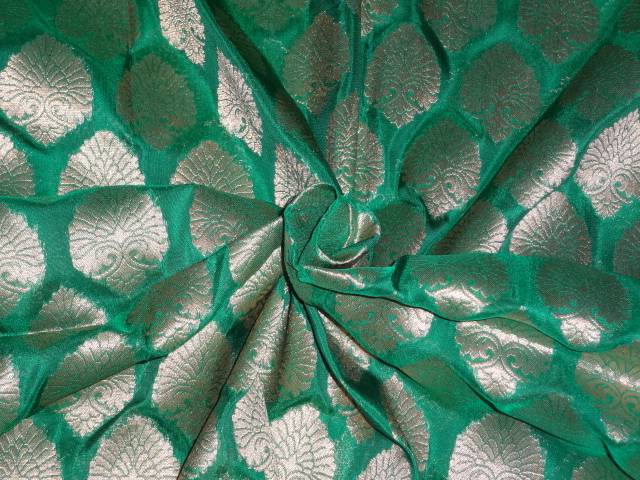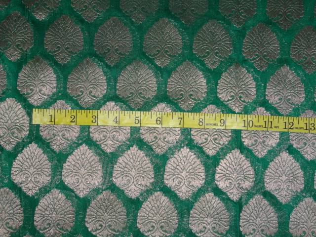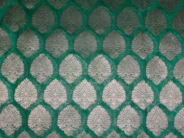 BROCADE FABRIC PEACOCK GREEN colour WITH METALLIC GOLD 44" wide BRO403[4]
