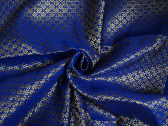 BROCADE FABRIC ROYAL BLUE X METALLIC GOLD MOTIF 44" wide