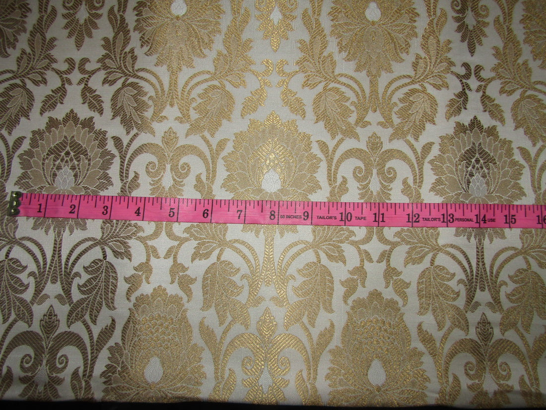 Brocade fabric white ivory x metallic GOLD 44" wide
