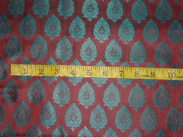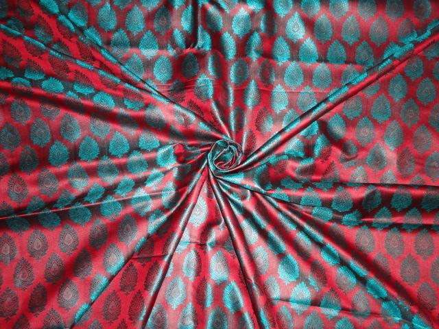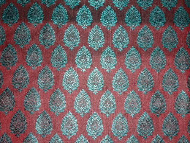 BROCADE JACQUARD FABRIC KINGFISHER GREEN & DEEP RED