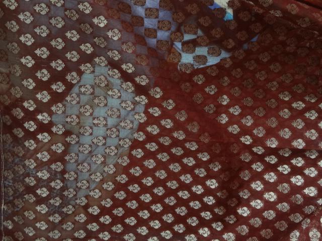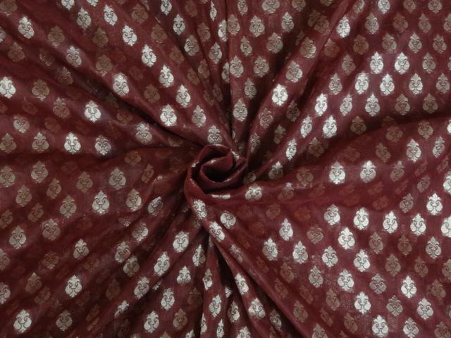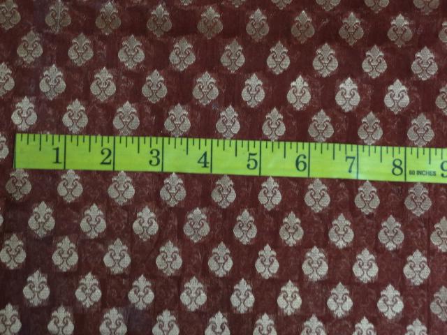 BROCADE SHEER FABRIC BLOOD RED WITH METALLIC GOLD MOTIVE