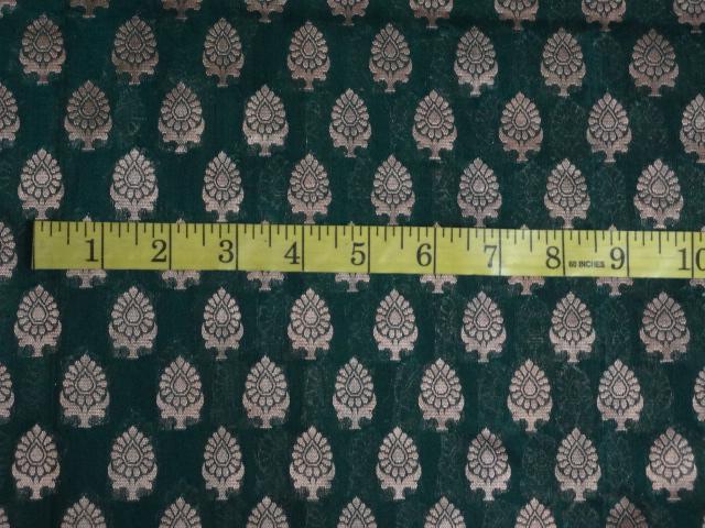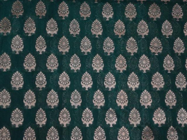 BROCADE SHEER FABRIC LEAF GREEN WITH METALLIC GOLD MOTIVE