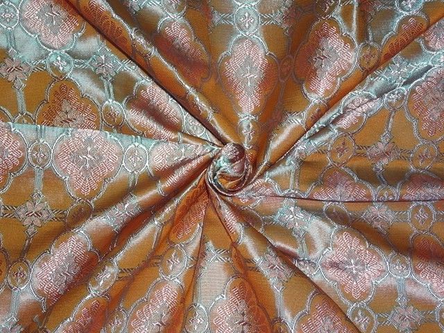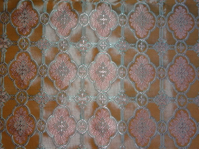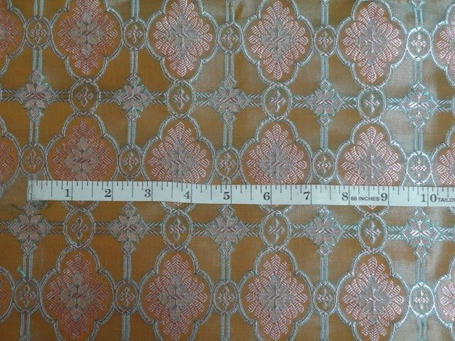 Brocade Vestment Fabric Light Pink,Aqua Blue & Mustard color 44" wide BRO337[5]
