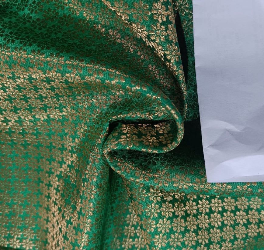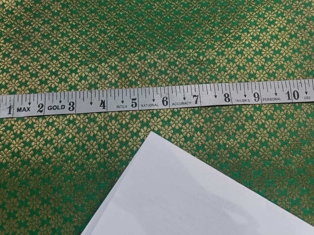 Brocade~Width ~ Grasshopper Green X Metallic Gold Motif 44" wide