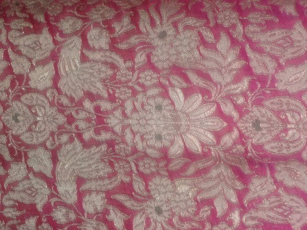 Heavy Brocade Fabric Pink,Green & Metallic Gold color 44" wide BRO326[5]
