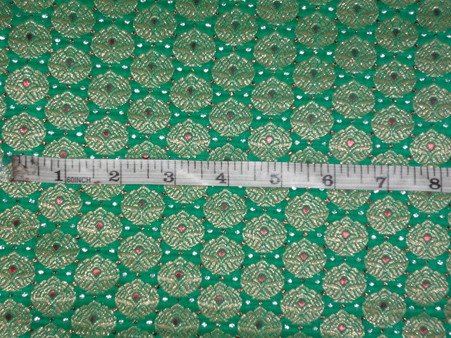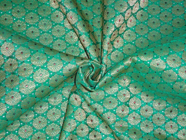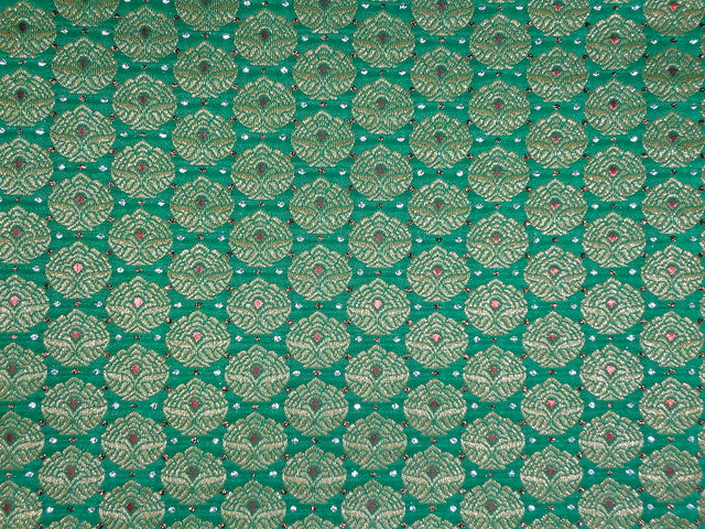 Pure SILK BROCADE FABRIC Green ,Red & Metallics 44" wide BRO313[3]