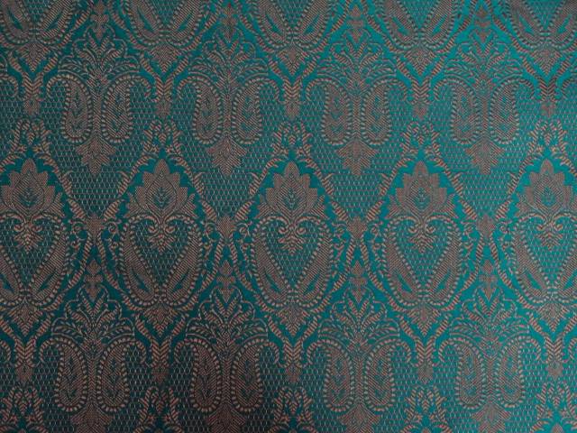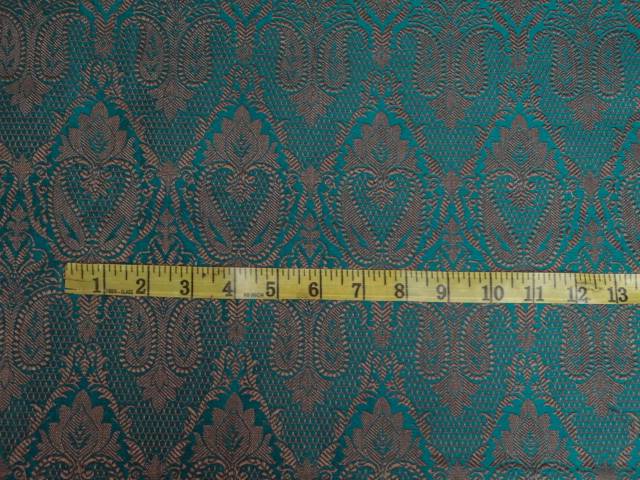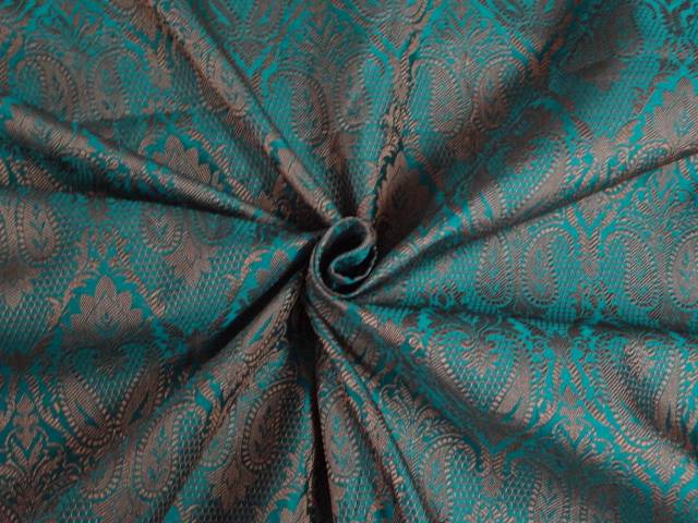 SILK BROCADE KINGFISHER GREEN & BROWNISH GOLD COLOR 44" WIDE BRO405[3]