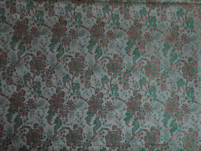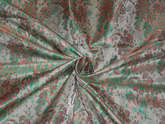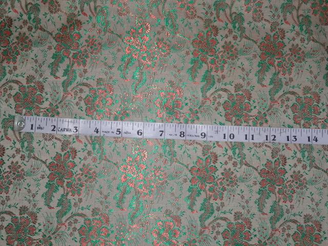 SILK BROCADE DUSTY GREY PARROT GREEN LIGHT TAN 44" WIDE BRO306[5]