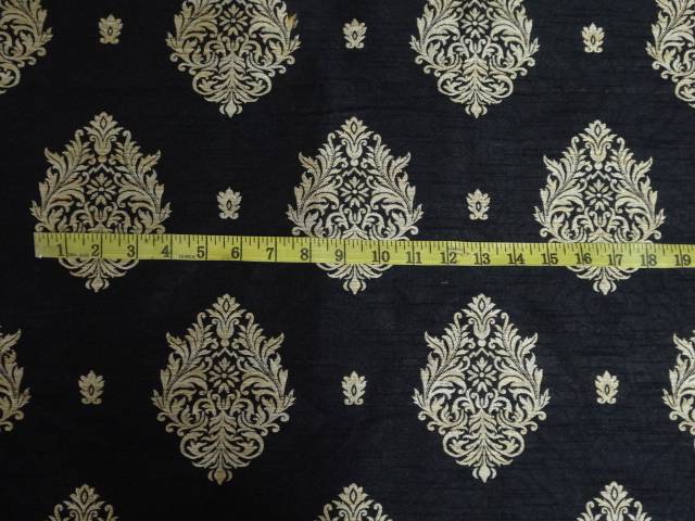 SILK BROCADE FABRIC BLACK X METALLIC GOLD COLOR 44" WIDE BRO407[3]