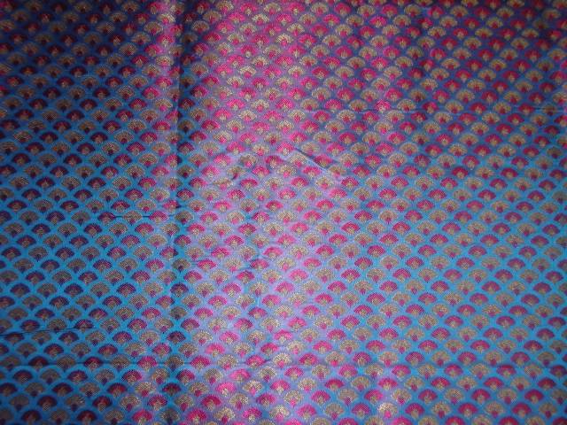 SILK BROCADE FABRIC BLUEISH GREY WITH MOTIVE OF PINK METALLIC GOLD COLOR 44" WIDE BRO408[2]