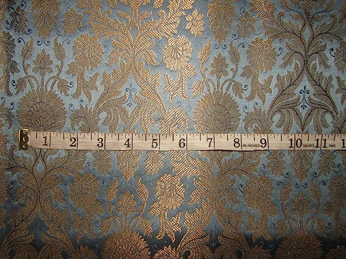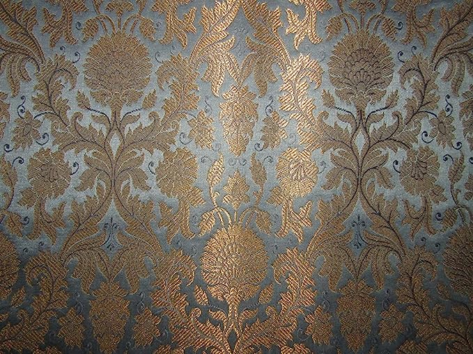 Silk Brocade fabric cloudy grey x metallic gold color 44" wide BRO745A[3]