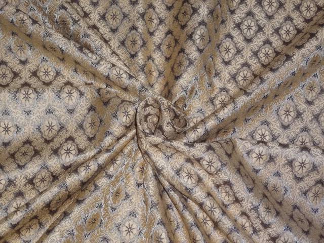 SILK BROCADE FABRIC DUSTY GREY, LIGHT GOLD AND BROWN COLOR 44" WIDE BRO407[4]