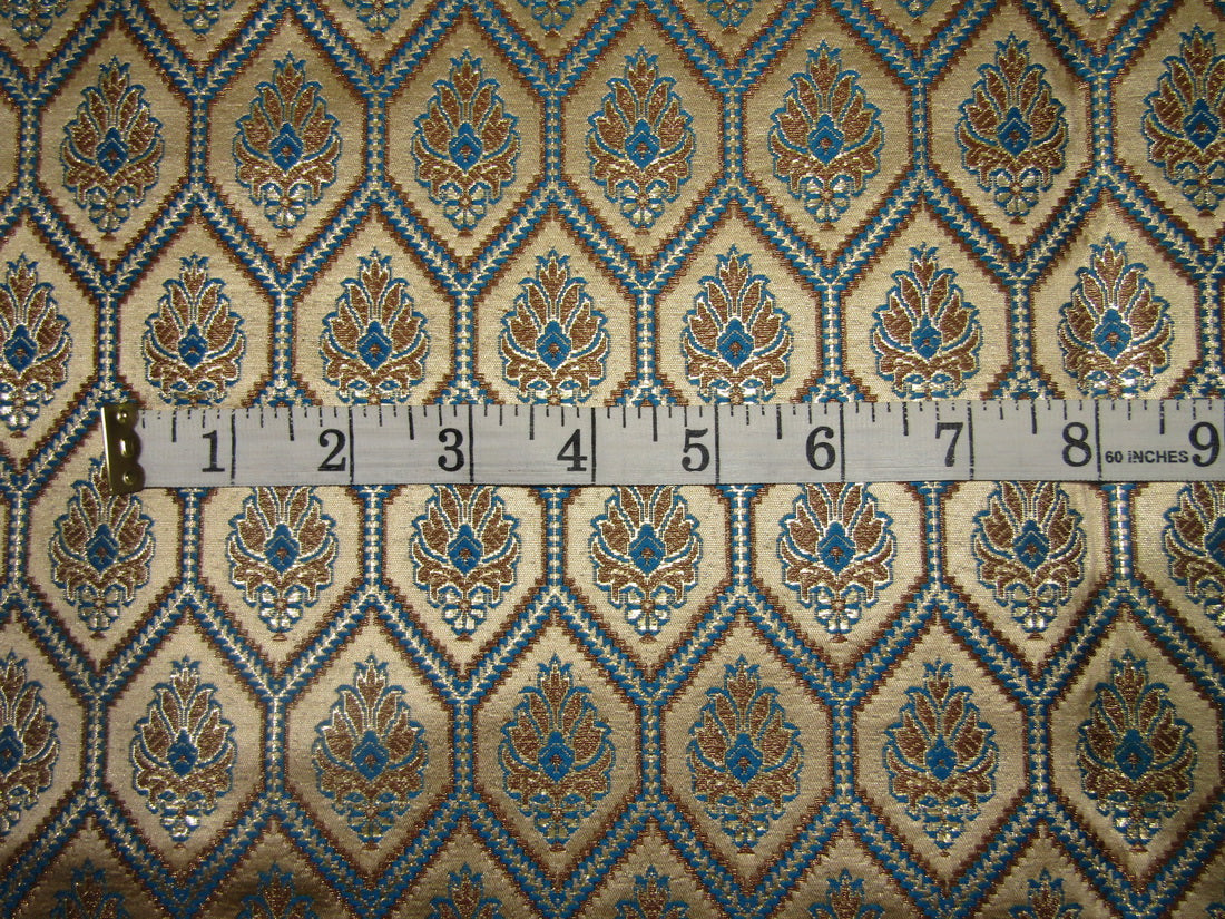 Silk Brocade fabric gold x metallic gold and blue color 44" wide BRO731[2]