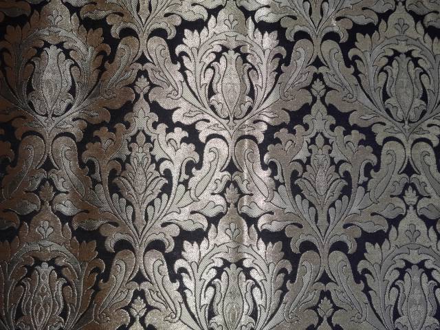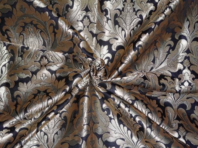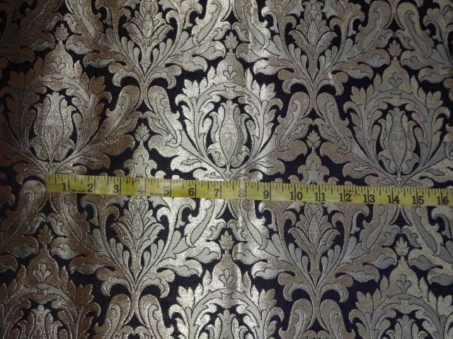 SILK BROCADE FABRIC JET BLACK ANTIQUE GOLD METALLIC GOLD COLOR 44" WIDE BRO407[2]