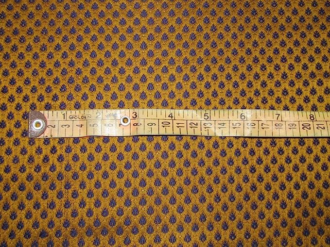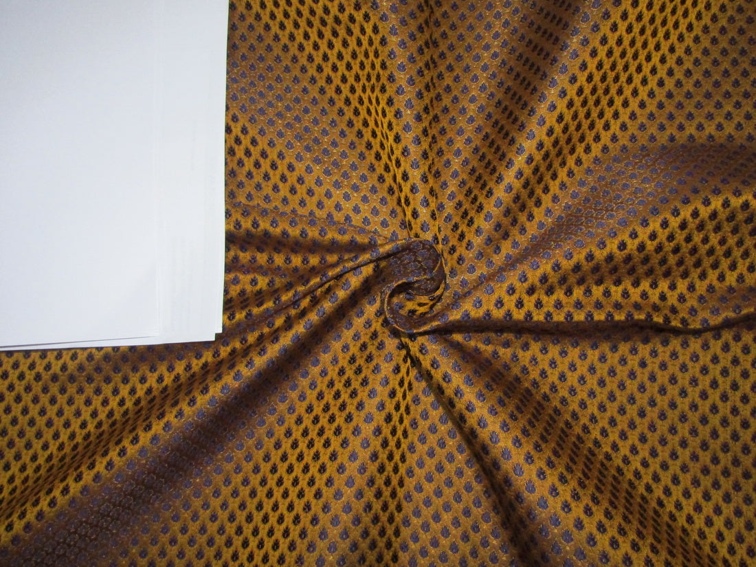 SILK BROCADE FABRIC Mustard, Blue & Metallic Gold Color 44" wide BRO382[2]