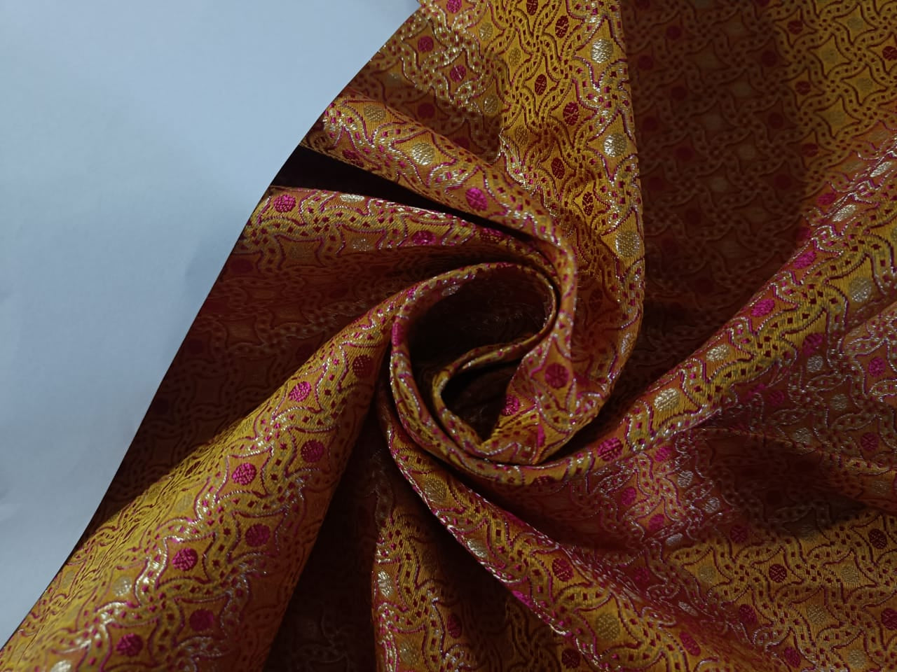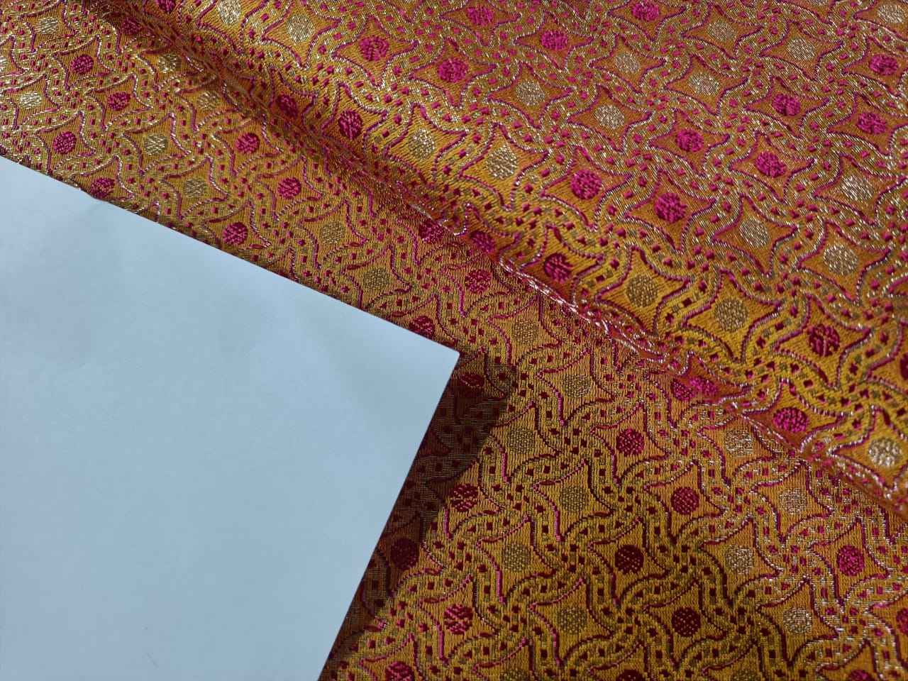 Silk Brocade fabric Pink,Light Mango & Metallic Gold Colour 44" wide BRO308[4]
