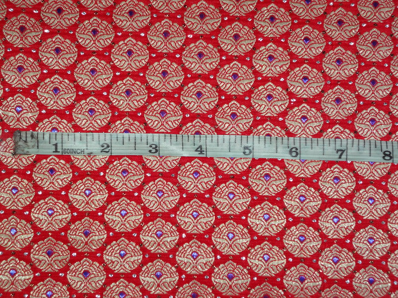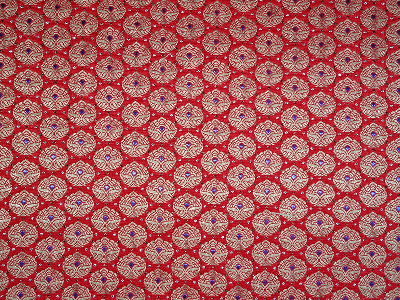SILK BROCADE FABRIC Red,Light Gold & Metallics 44" wide BRO312[4]