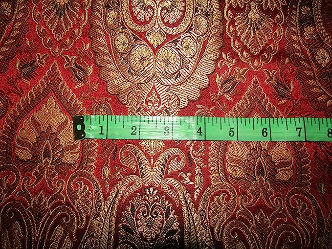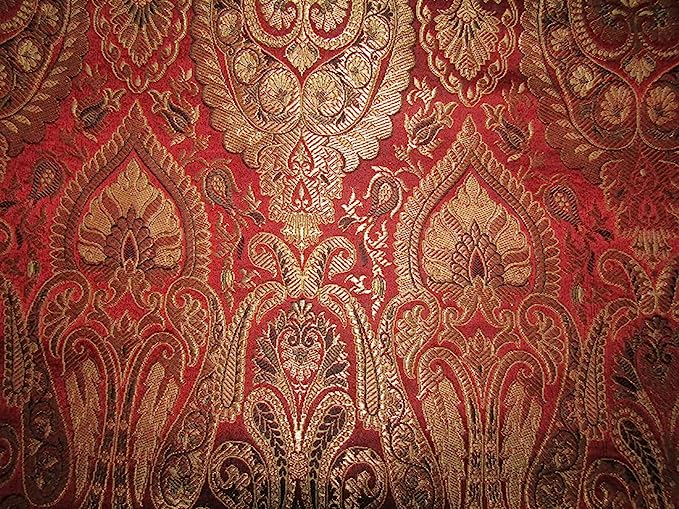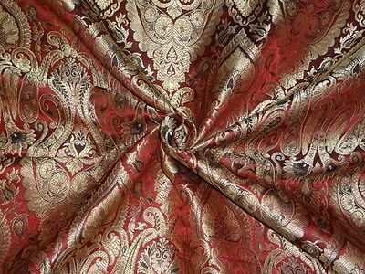 SILK BROCADE FABRIC Red,Metallic Gold & Black COLOR 44" WIDE BRO392[2]
