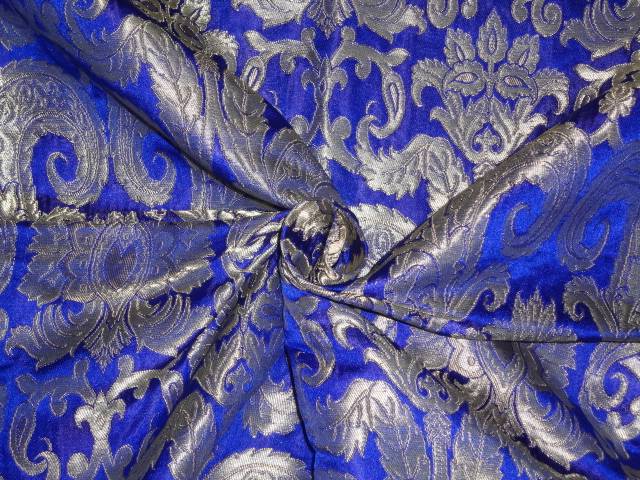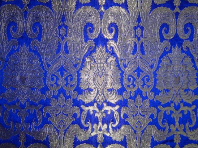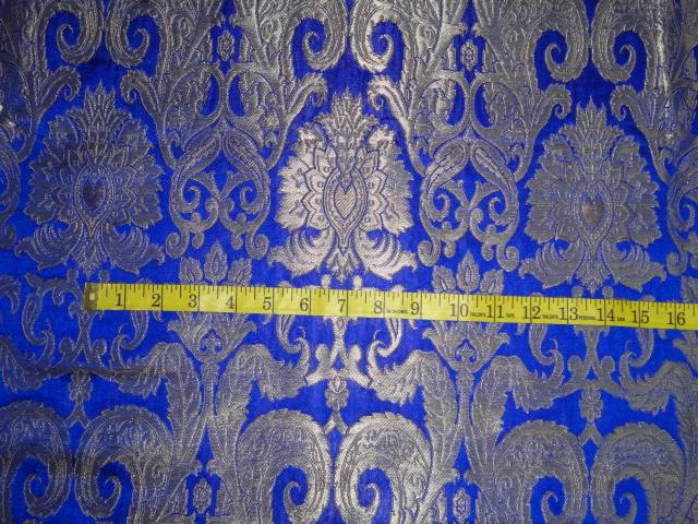 SILK BROCADE FABRIC ROYAL BLUE WITH METALLIC GOLD 35" WIDE BRO402[3]