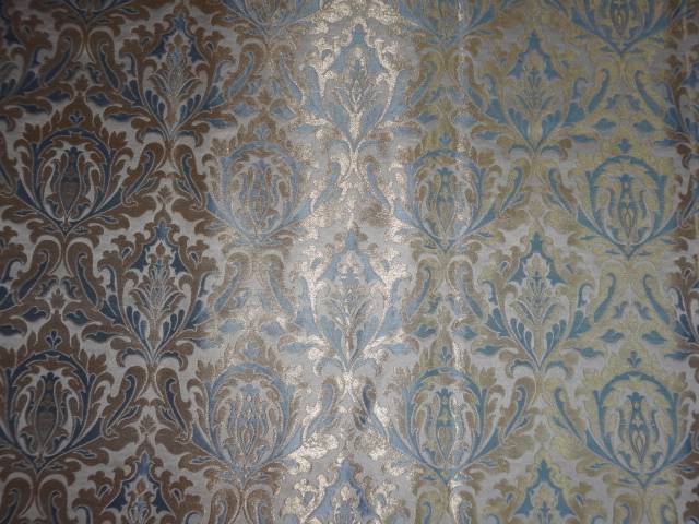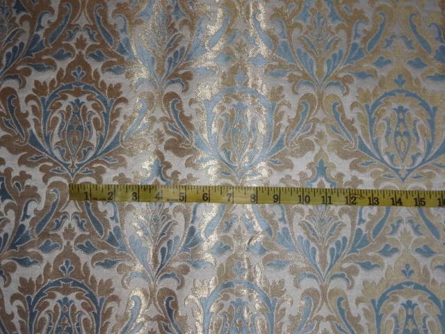 SILK BROCADE FABRIC SEA BLUE IVORY AND METALLIC GOLD COLOR 44" wide BRO407[1]