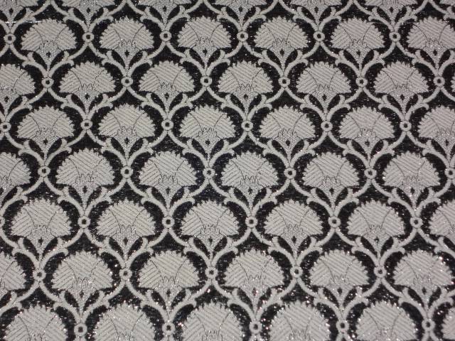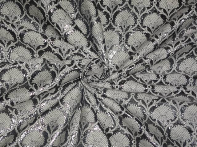 SILK BROCADE FABRIC SILVER GREY WITH IVORY color 44" wide BRO371[3]