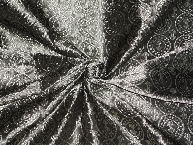 SILK BROCADE FABRIC Steel Grey & Silver Colour 44" wide BRO324[5]