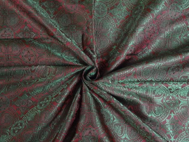 SILK BROCADE MAROON AND GREEN color 44" wide BRO317[5]